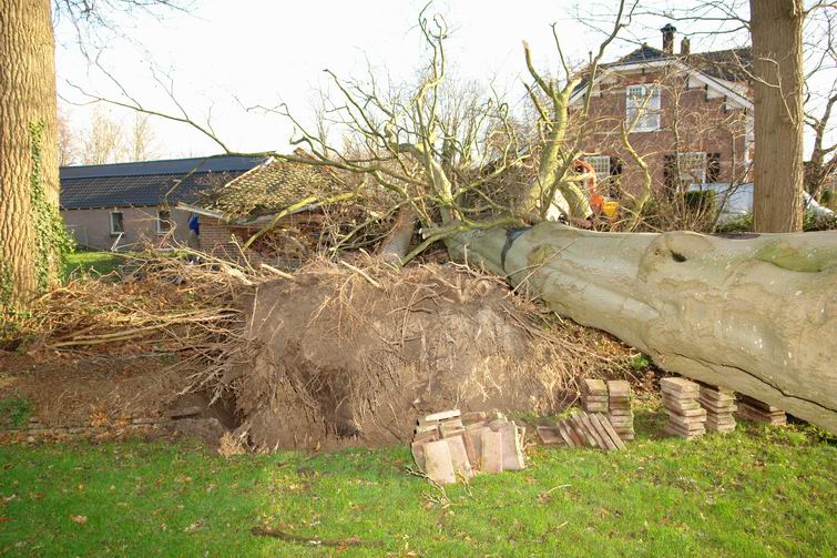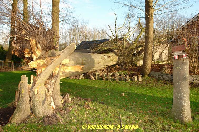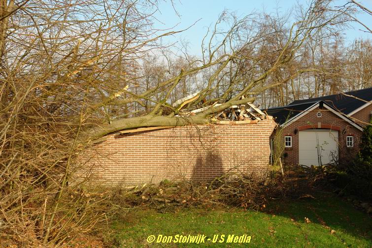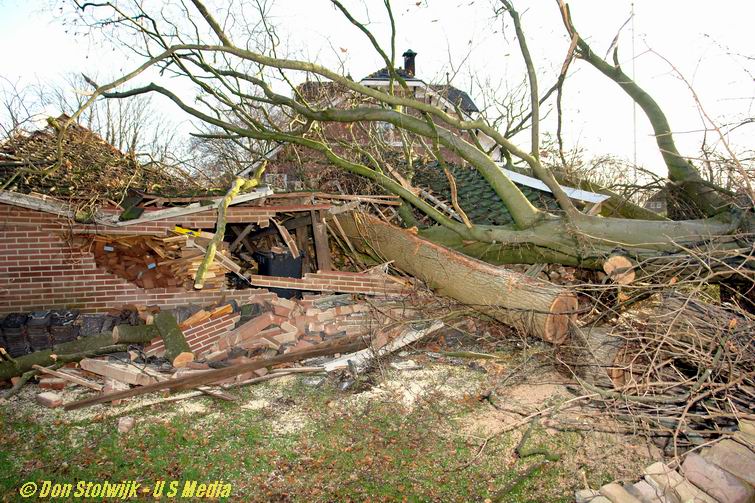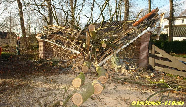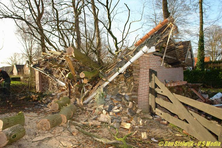 Hier -aan de Dedemsvaartseweg Noord- verpletterden twee bomen een schuur vol open-haardhout