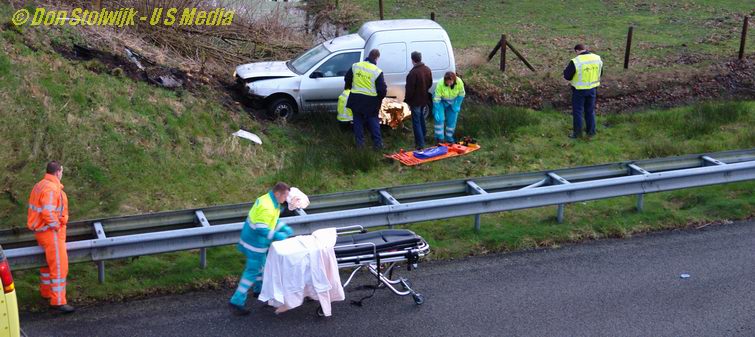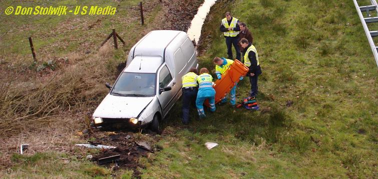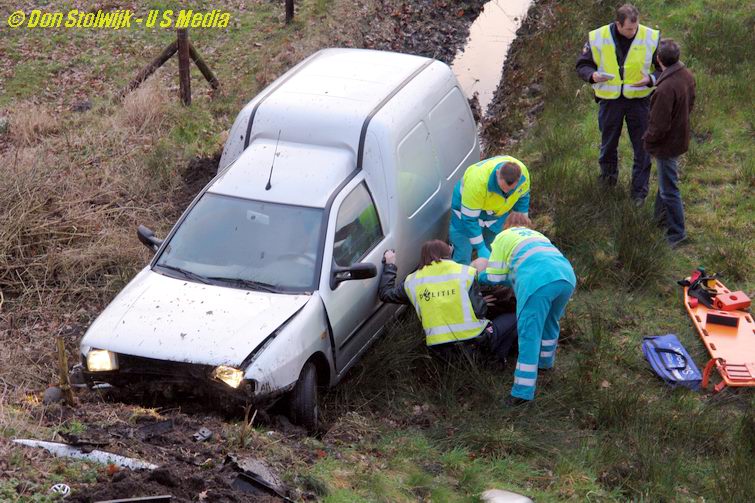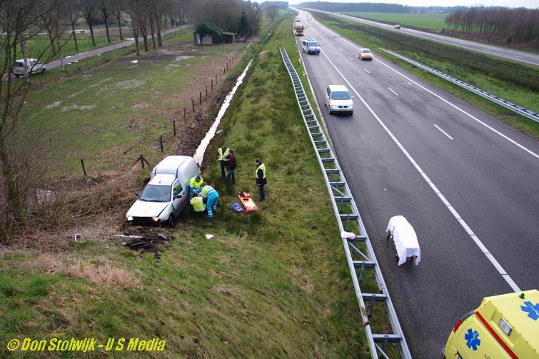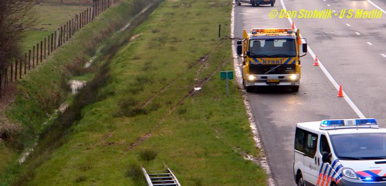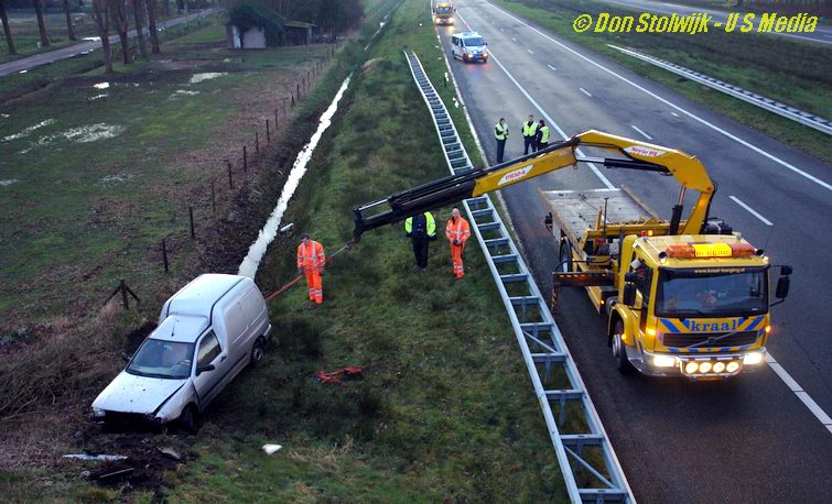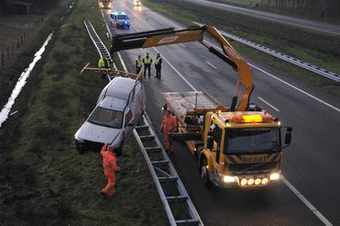 Auto ploegt tientallen meters door sloot langs de A37