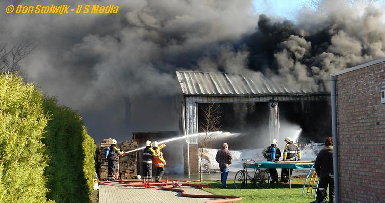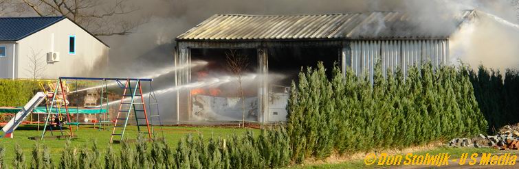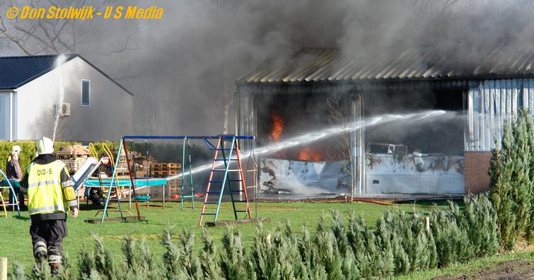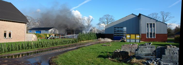 Brand slaat over op bedrijfsloods met vuurwerkopslag