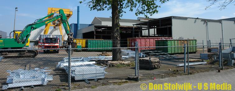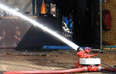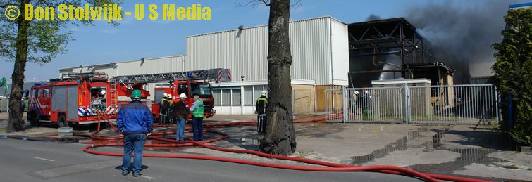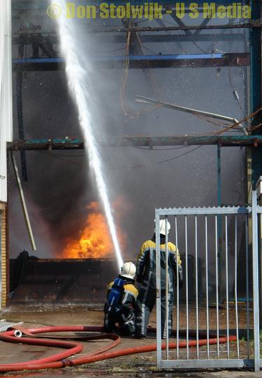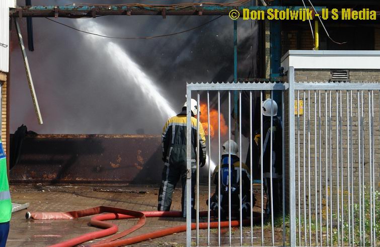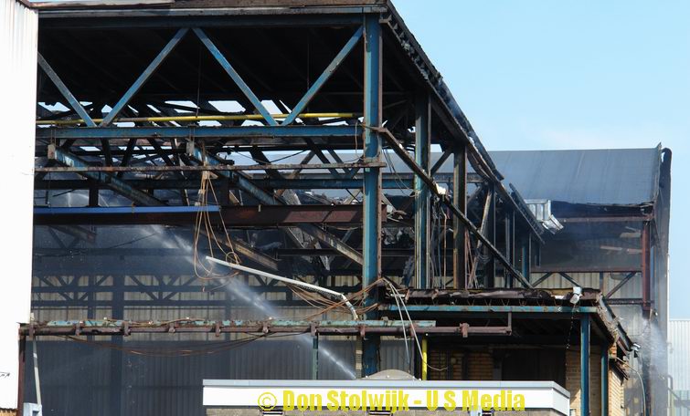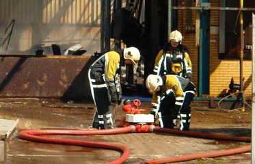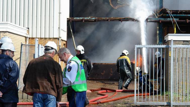Brand in leegstaande fabriekshal na ongeval met bak vol polypropyleen
