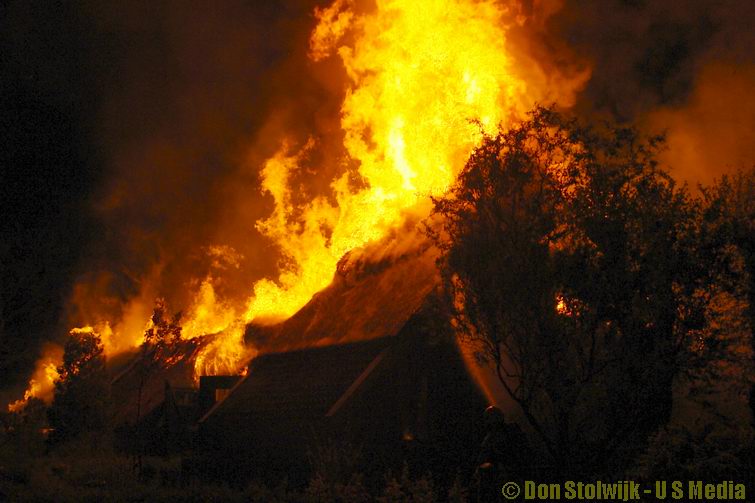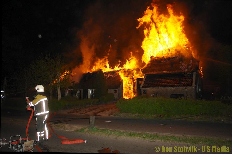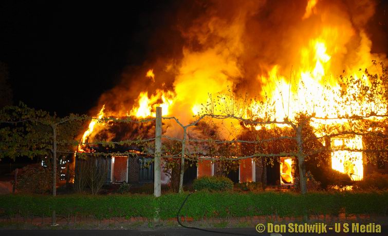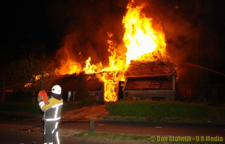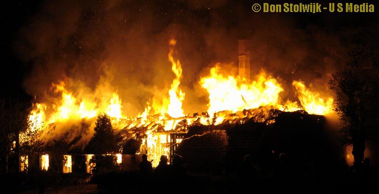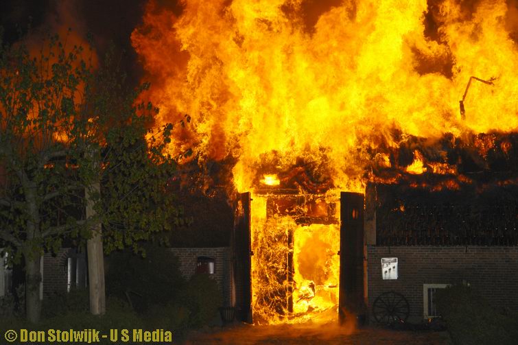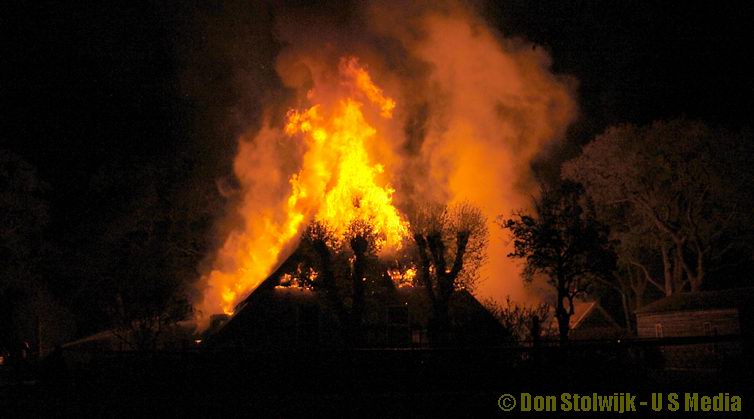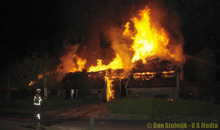 Brand verwoest grote rietgedekte boerderij