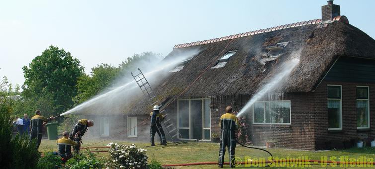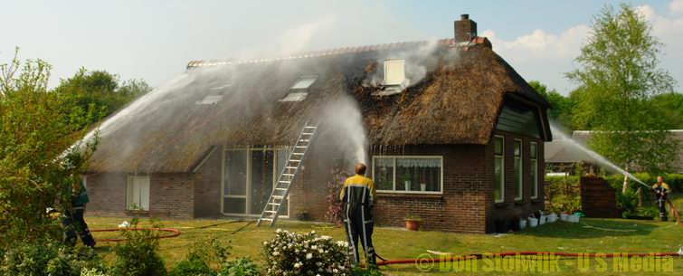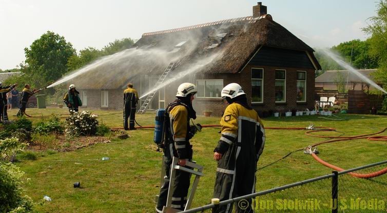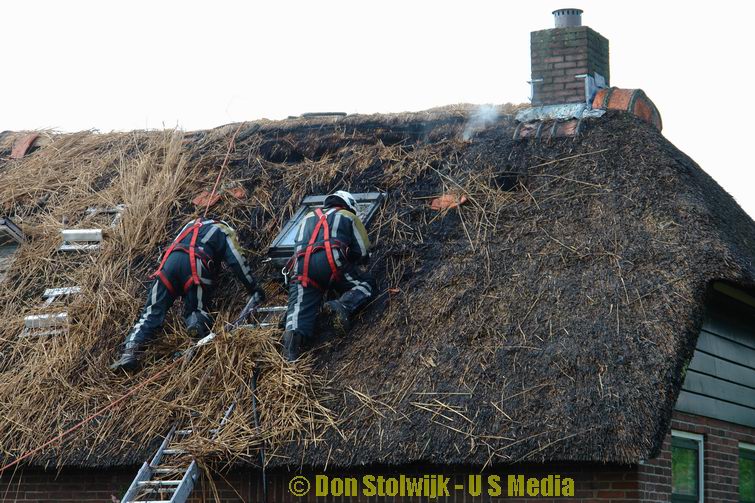 Brandweer weet brand in rietgedekte woning tijdig te blussen