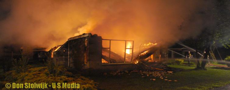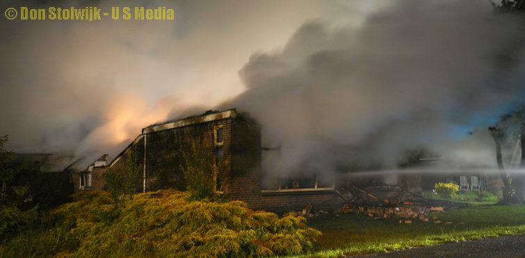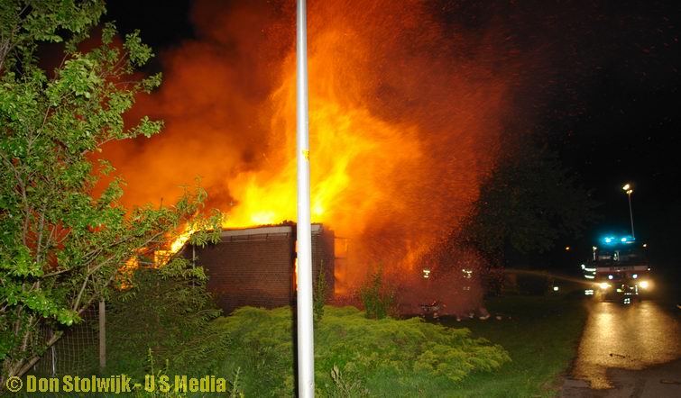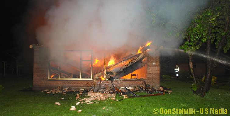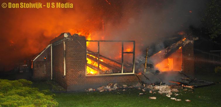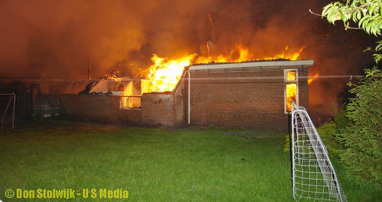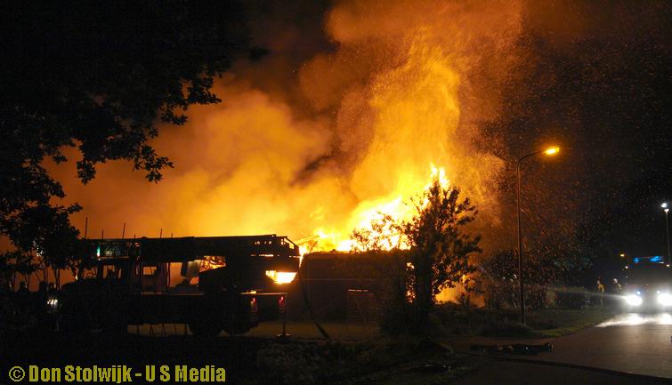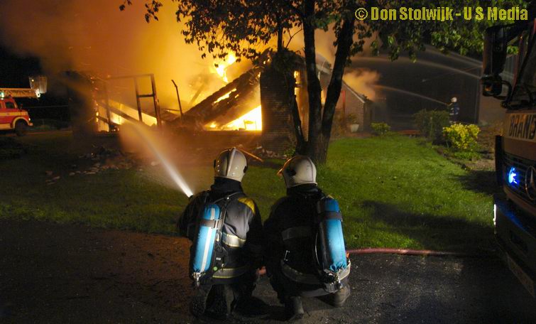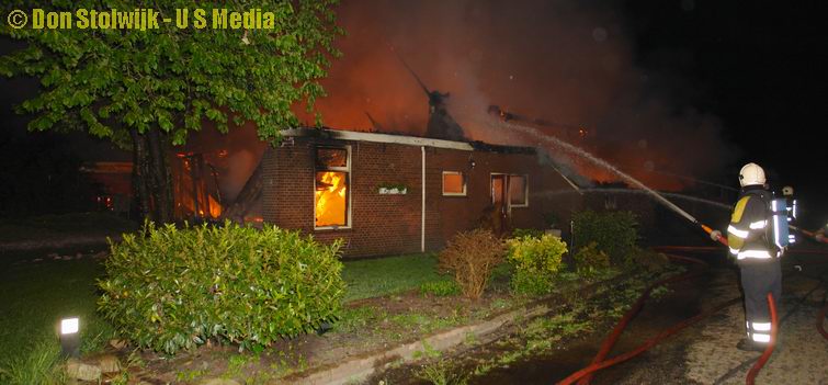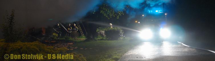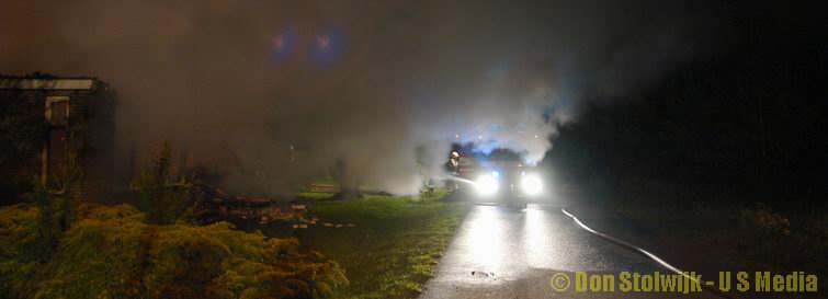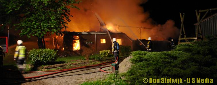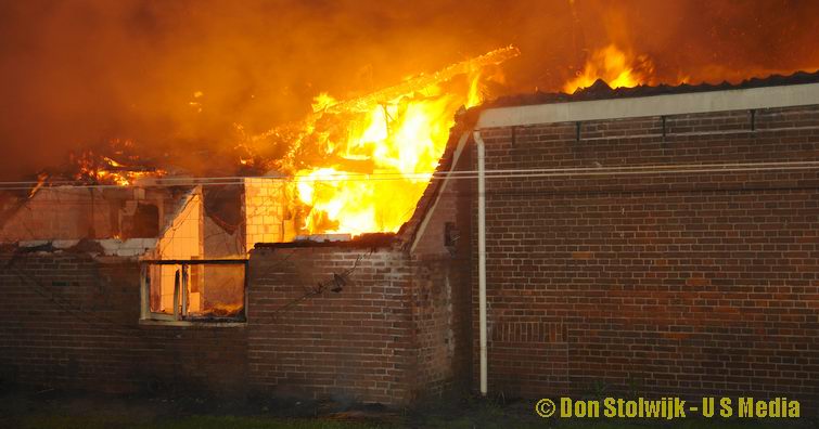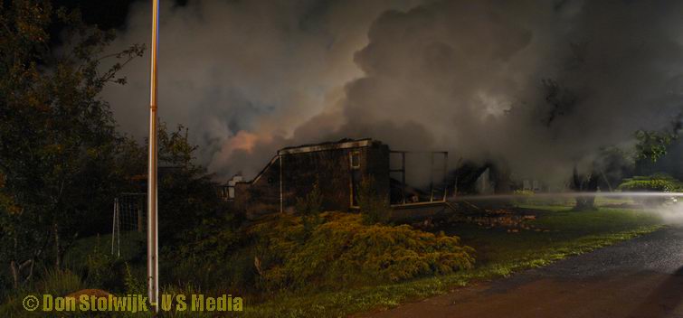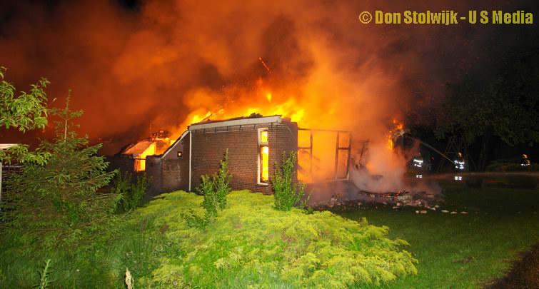 Half-rietgedekte boerderij brandt af tijdens afwezigheid van de bewoners