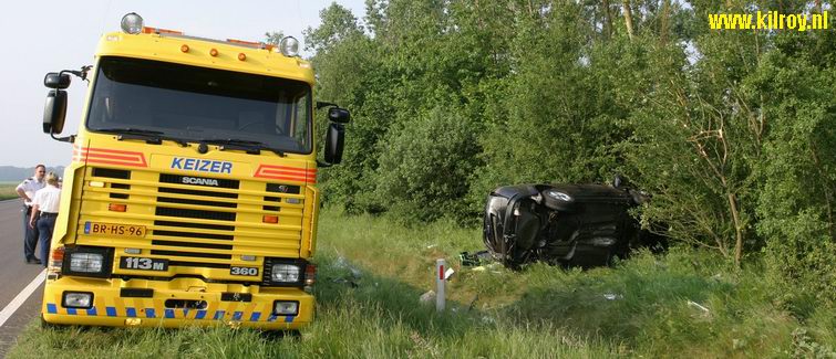 Zaterdag 9 juni 2007 Borger ( N34 ) : Flinke ravage na eenzijdig verkeersongeval |