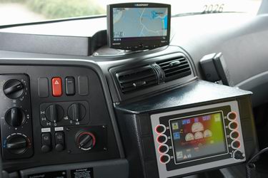 Het navigatiesysteem, dat altijd aan staat, wordt vanuit de Leitstelle (alarmcentrale) geprogrammeerd.