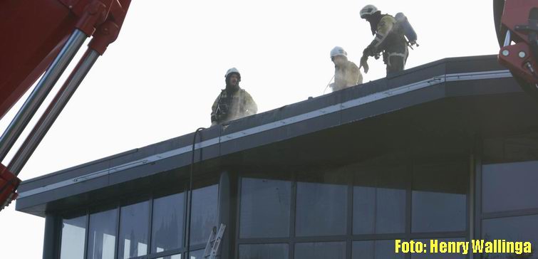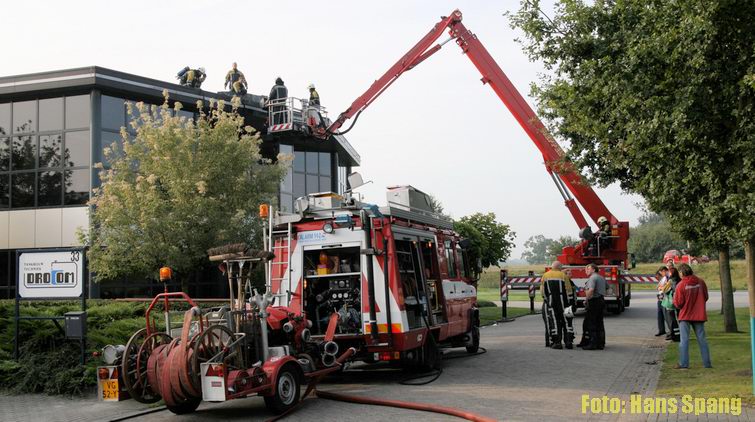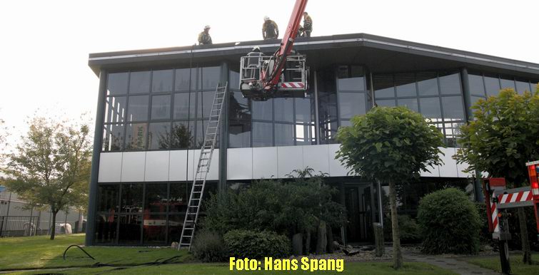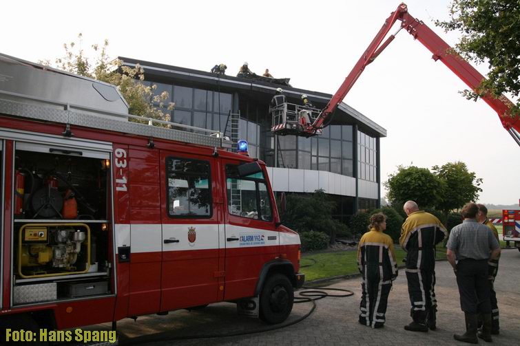 Dak in brand bij motorenhandel