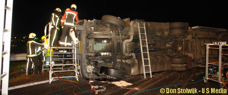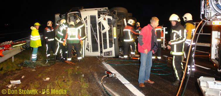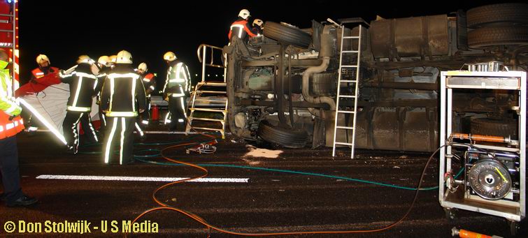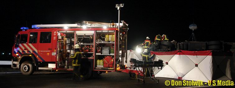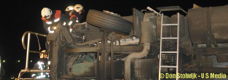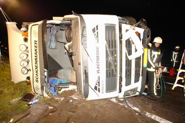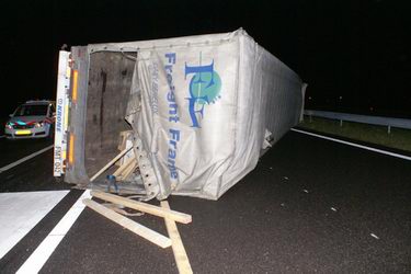 A37 bij Nieuw Amsterdam: Truck gekanteld na uitwijkmanoeuvre bestelautobestuurder voor onverlichte auto . . .![]() |