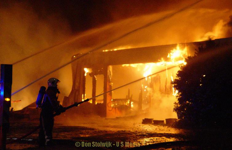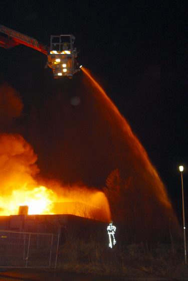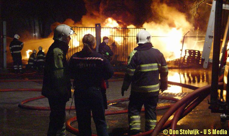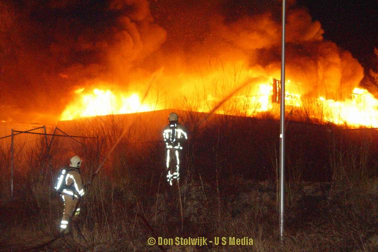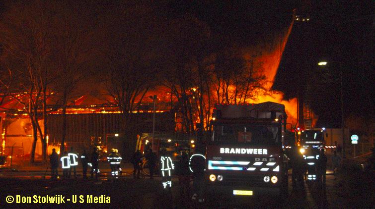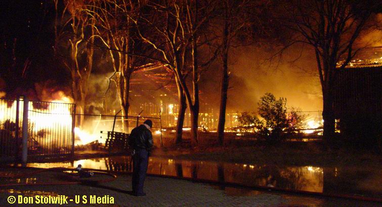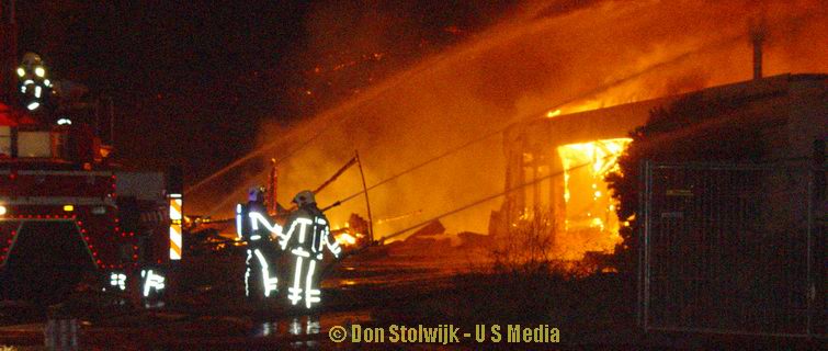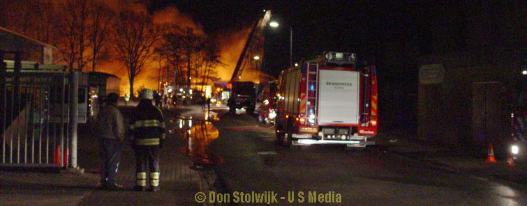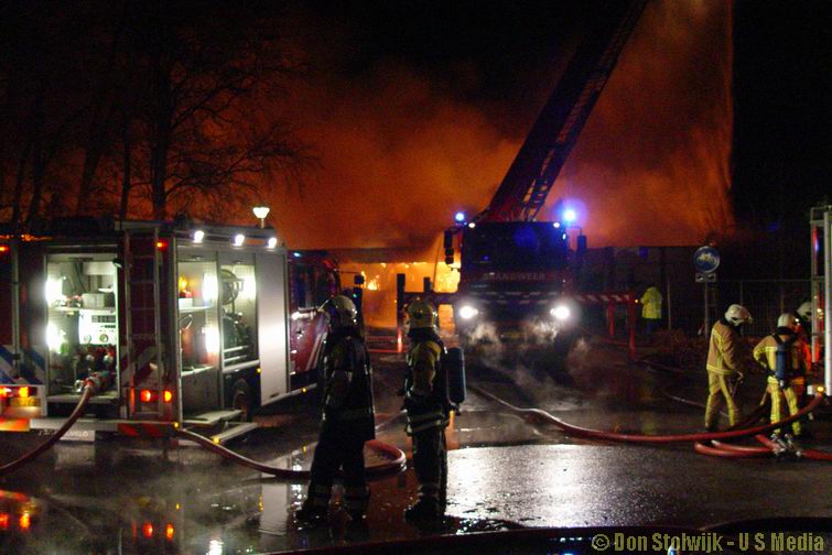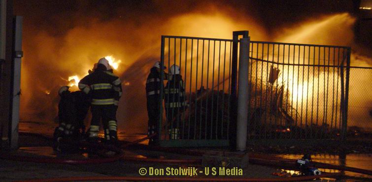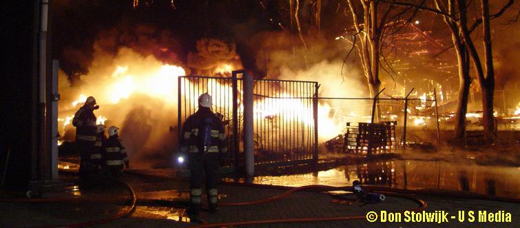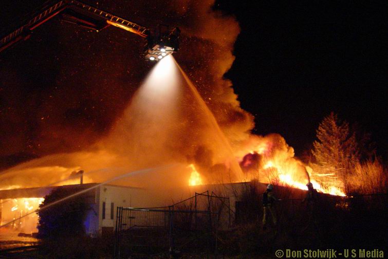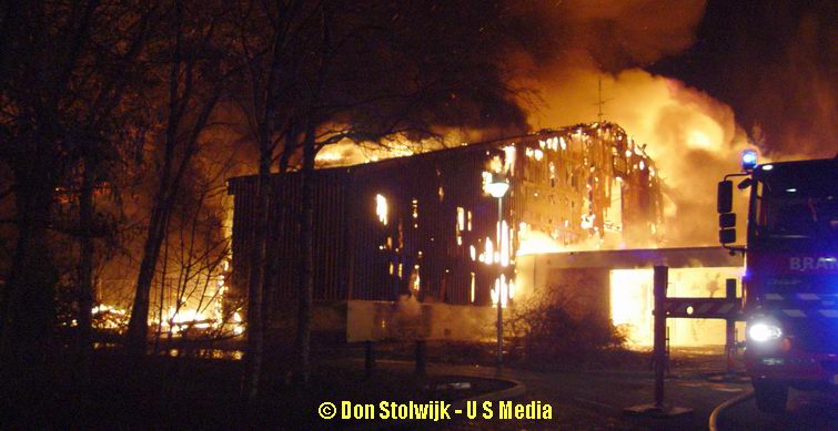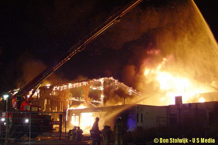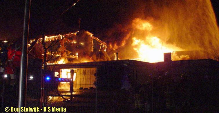 Zaterdag 12 januari 2008 Vroomshoop (Havenstraat): Buitenbrand op terrein kunststofrecyclingbedrijf legt tennishal de Hoekenhof in de as .![]() |