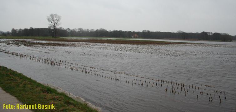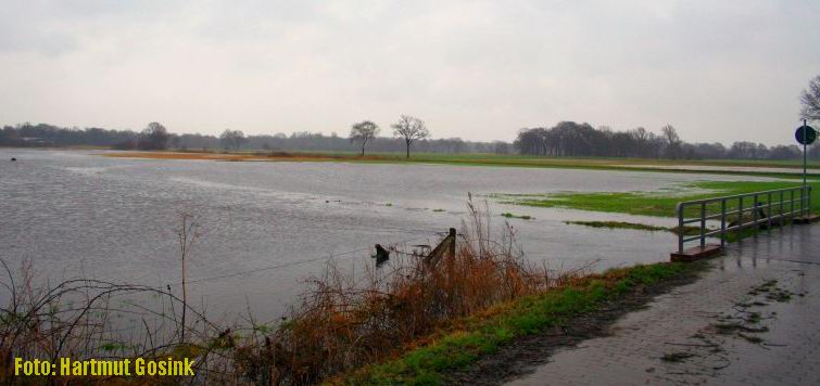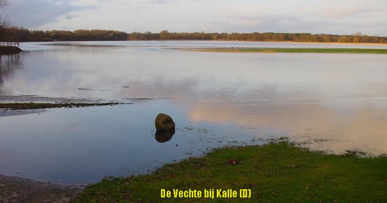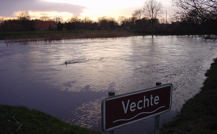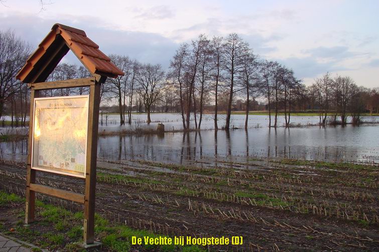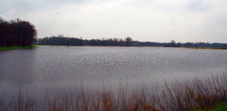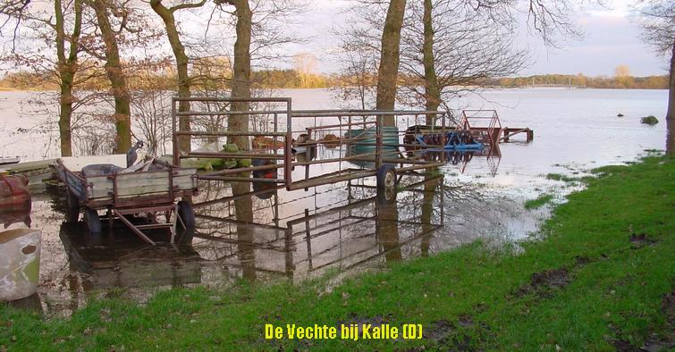 Dinsdag 22 januari 2008 Hoog water in de Vecht Ommen Foto's van Hartmut Gosink: Een vader en z'n zoons nemen de gelegenheid te baat en kanoën over de ondergelopen weilanden |