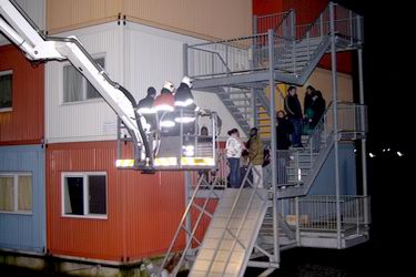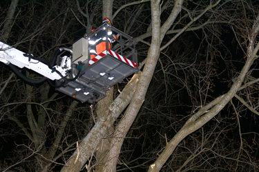 Nadat de storm zaterdag rond half vier 's nachts in kracht toenam, onstonden ook de eerste schadegevallen. Aan de Herenstraat kon de brandweer tegen vier uur 's nachts aan de slag om de afgebroken kruin van een oude eik op te ruimen. ![]() Met mankracht werd het gevaarte weggetrokken, waarna kettingzaag een eind maakte aan de wegversperring. ![]() De eens zo statige boom bood nadien een troosteloze aanblik, maar het verkeer kan weer veilig over de Herenstraat. Ook elders in Slagharen was het raak, hoewel de schade daar voor zover bekend nogal meeviel. ![]() Aan de Herenstraat nabij de Weverijweg sneuvelde bijvoorbeeld een billboard na een forse windvlaag. ![]() Dat lot overkwam ook een billboard aan de Edelinckstraat in de Hardenberger nieuwbouwwijk Marslanden. Niemand raakte gewond. De brandweer legde de resten op een veiliger plek. Ook elders in Hardenberg moesten de spuitgasten in actie komen. ![]() Van een renovatieflat aan de Parkweg (Hardenberg) werd dakleer losgeblazen en werden steigers beschadigd ![]() Omdat het in dit geval te riskant was om van de hoogwerker gebruik te maken, moest men wachten tot de sleutel van het dakluik arriveerde. ![]() In een bosperceel aan de Bosweg bij Hardenberg sneuvelden diverse naaldbomen; soms met drie of vier tegelijk. ![]() De beheerders hebben de komende maanden weer volop werk om beschadigde bospercelen op te ruimen. Oud Avereest: boom plet auto Een voor invalidenvervoer ingerichte Renault Kangoo raakte zaterdag onhestelbaar beschadigd, toen hij bij de NH-kerk geparkeerd stond. ![]() De auto werd bedolven onder een afgebroken tak van een naast de kerk staande boom. ![]() Gelukkig raakte ook hier niemand gewond.Berger Autax bracht het voertuig naar een garagebedrijf in Dedemsvaart. Later die middag maakte de Balkbrugse brandweer korte metten met de bejaarde boom. Zwolle: brandweer haalt bewoners van losgeslagen drijvende woonunit-flat Een ponton met 48 wooncontainers, goed voor 40 woonunits, is vanochtend aan de Hasselterdijk door de hevige storm losgeslagen. Door kabelbreuk was het ponton door de harde wind enkele meters het water op gedreven. Dat was schrikken voor de bewoners, die al gewekt waren door een harde donderslag tijdens een enorme onweersbui. Toen ze naar buten keken, zagen ze, dat ze waren afgedreven van de walkant. Er brak geen paniek uit onder de circa dertig -meest jonge- bewoners van het woonschip, maar ze belden voor alle zekerheid toch maar 112 Doordat ook beide loopbruggen van de wal naar de woningen te water geraakt waren, konden de ongeveer dertig bewoners geen kant op. ![]() De brandweer haalde de bewoners met de hoogwerker uit hun benarde positie. De meesten hadden, toen duidelijk werd dat ze weg moesten, al per GSM onderdak geregeld. Voor degenen, die dat niet lukte, zorgde de verhuurder voor onderkomen. (Foto's Persbureau Meter) Alteveer: automobiliste ramt boom