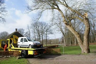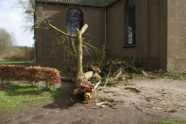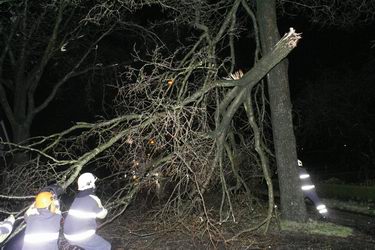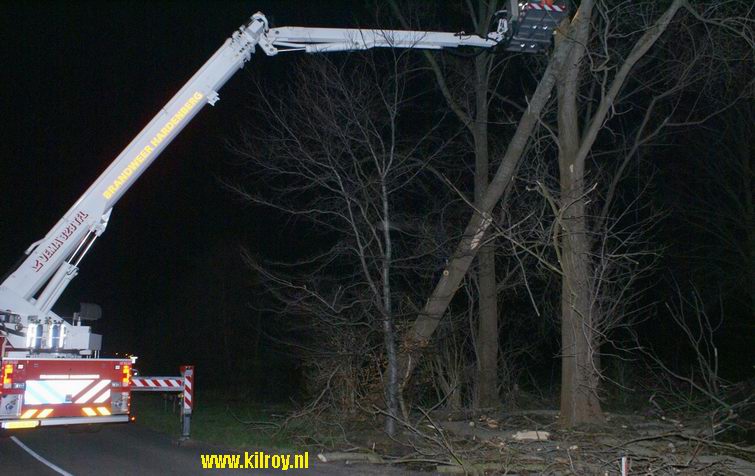 Zaterdag 1 maart 2008 Storm richt zware schade aan Slagharen: oude eik bezorgt brandweer flinke nachtelijke klus