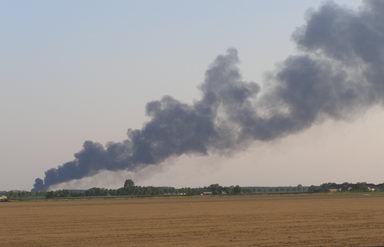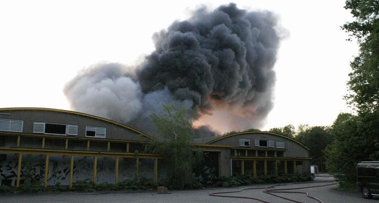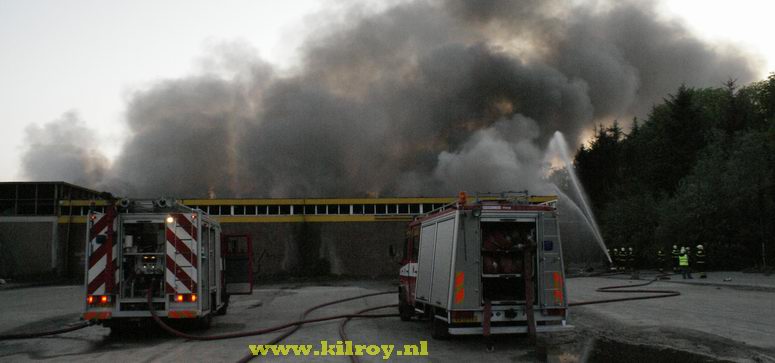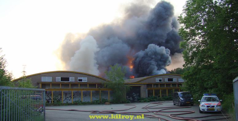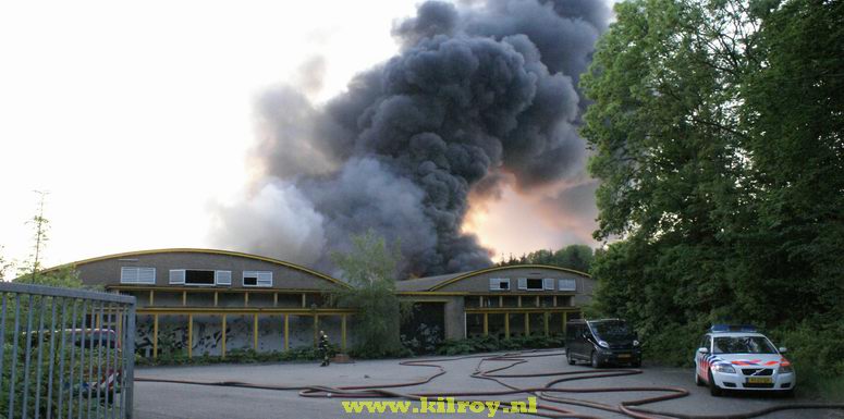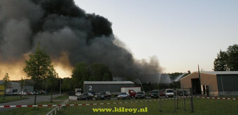 Vrijdag 9 mei 2008 Kraggenburg ( Bloesemweg ) : Grote brand verwoest leegstaand industriepand ![]() Vanaf een op afstand bestuurde ballon werden luchtopnamen gemaakt . |