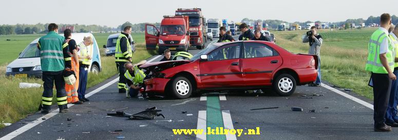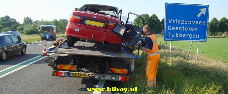 Vrijdag 6 juni 2008 N36 ter hoogte van de afslag Vriezenveen - Geesteren): Automobilist overlijdt na frontale botsing ![]() ![]() ![]() ![]() ![]() ![]() ![]() ![]() ![]() De door de bestelbus aangereden Mazda. Achter het achterwiel is een zeer duidelijke indruk van het wiel van de tegenpartij te zien. ![]() ![]() ![]() ![]() ![]() ![]() ![]() ![]() ![]() ![]() ![]() ![]() ![]() ![]() ![]() ![]() ![]() In de kiometers lange file richting Vriezenveen vond bij het Veenkanaal een kop-staart-botsing plaats, waarbij flinke schade ontstond. ![]() ![]() |
