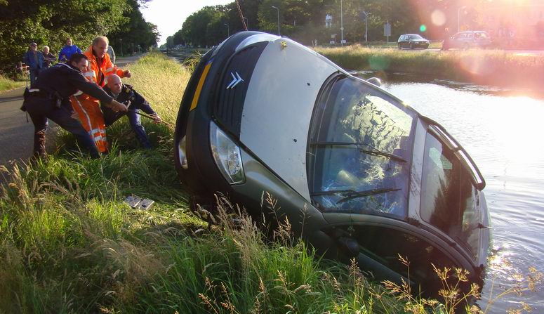 Donderdag 12 juni 2008 Dedemsvaart ( Moerheimstraat ): Zojuist aangeschafte auto rijdt de vaart in