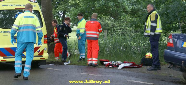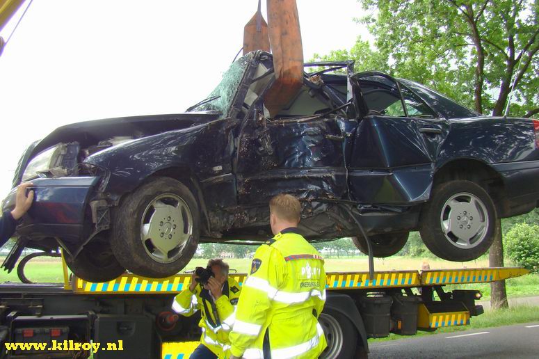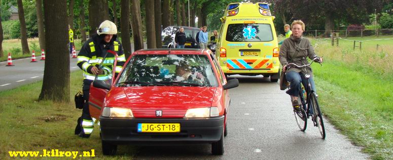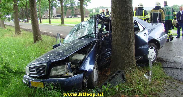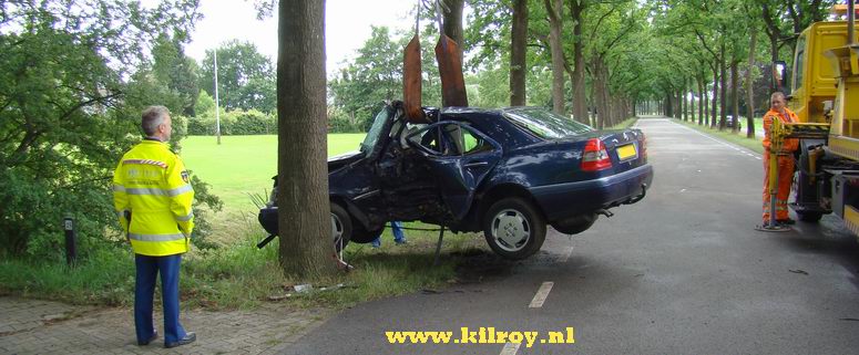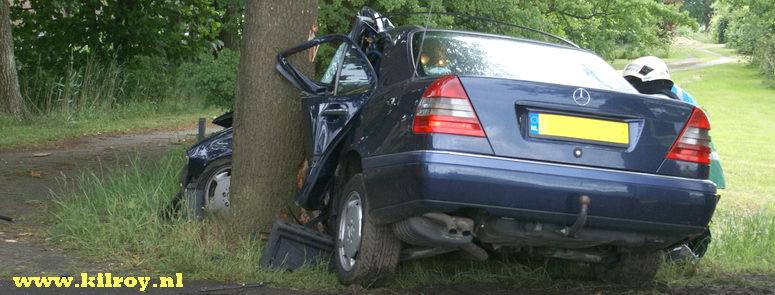 Maandag 16 juni 2008 Ruinerwold ( Haakswold ): Automobiliste zwaar gewond na botsing tegen boom .