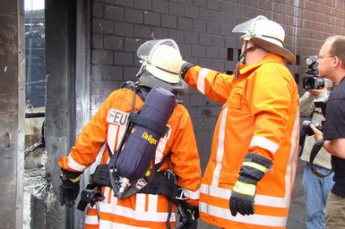 .![]() .![]() . Pressewart Hartmut Gosink geeft een interview aan een cameraman van de regionale media U ziet het goed: een Nederlandse voetbalvlag . De gebruikte brandslangen worden verzameld en naar de kazerne in Nordhorn gebracht, waar ze gewassen, gespoeld en gedroogd worden. Een technisch rechercheur (Kripo) noteert gegevens uit eerste hand |