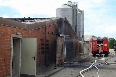 Maandag 16 juni 2008 Emlichheim ( Aatalstraße ): Grote kuikenstal volledig uitgebrand .