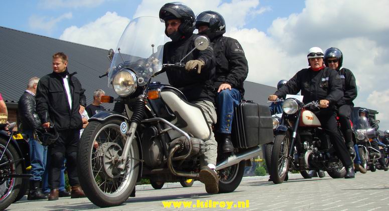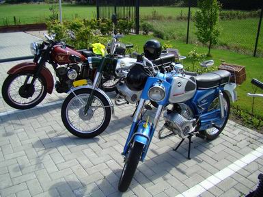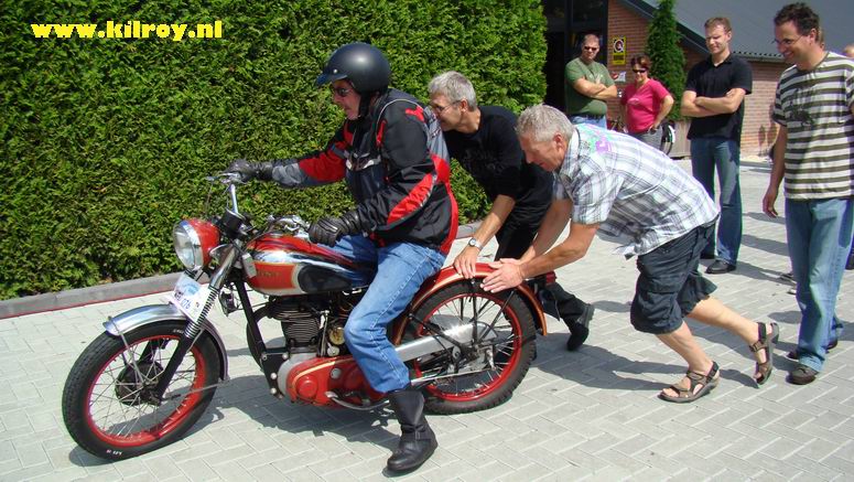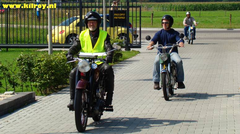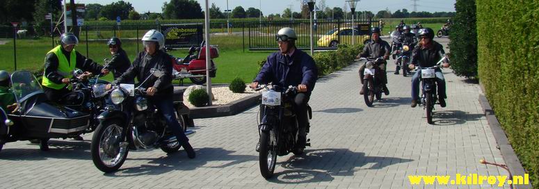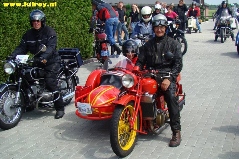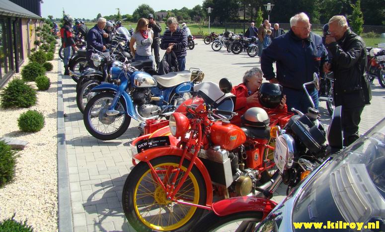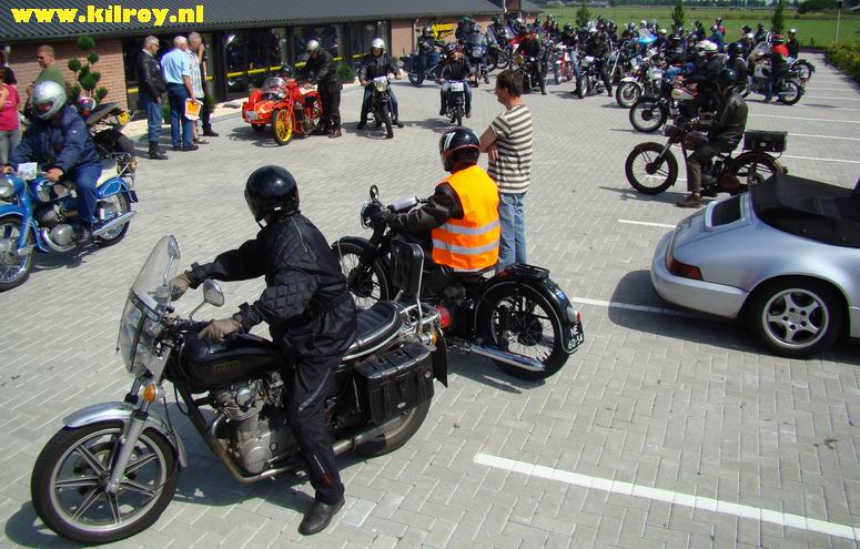 Zaterdag 2 augustus 2008 Slagharen ( Hoogeveenseweg) : Honderd toerrijders met oude motoren maken tussenstop bij Anbergen Motoren - |