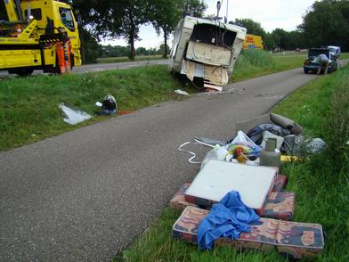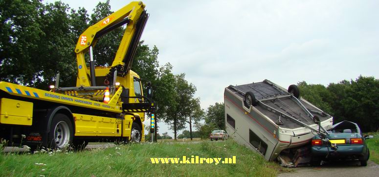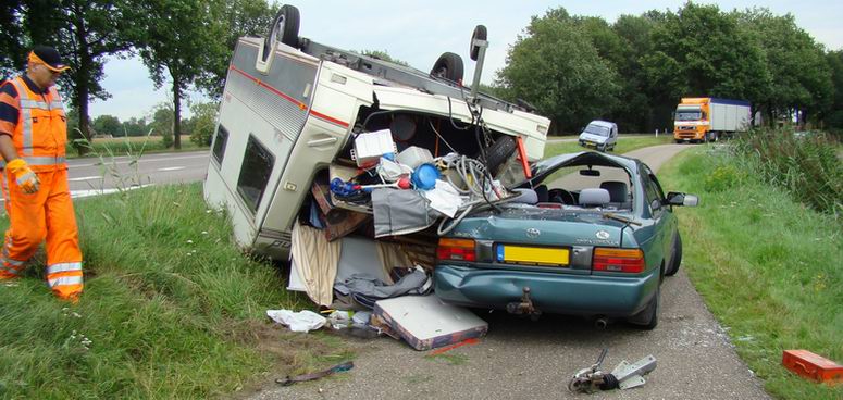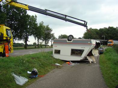 Donderdag 21 augustus 2008 N34R ( vlak voor de afslag Gramsbergen / Ane ) Auto en caravan total loss - -