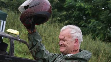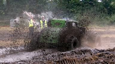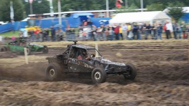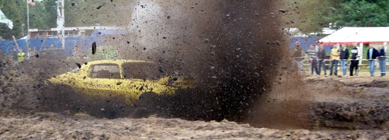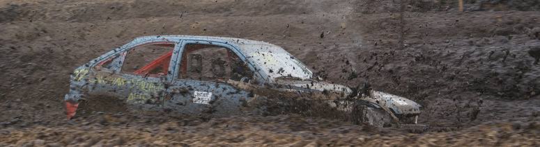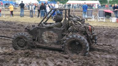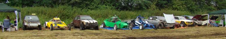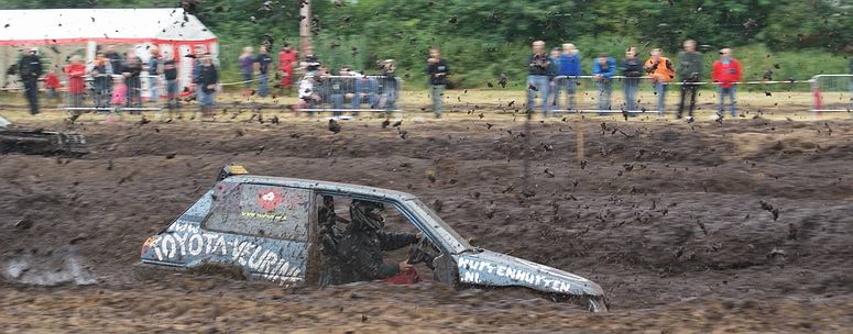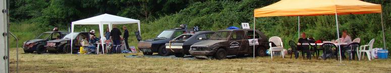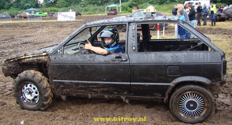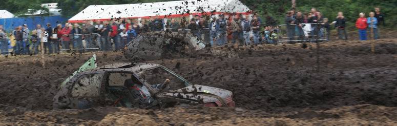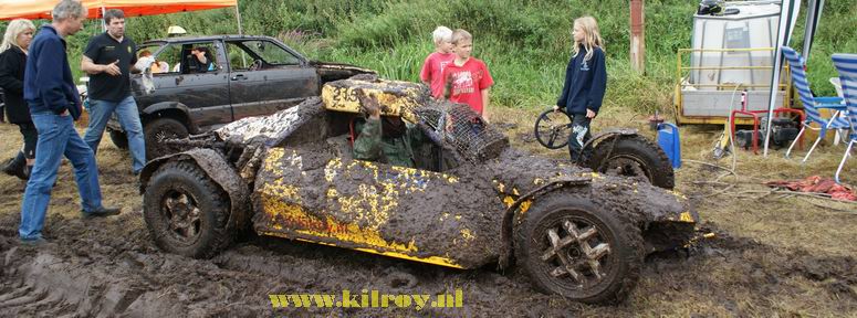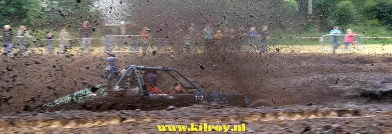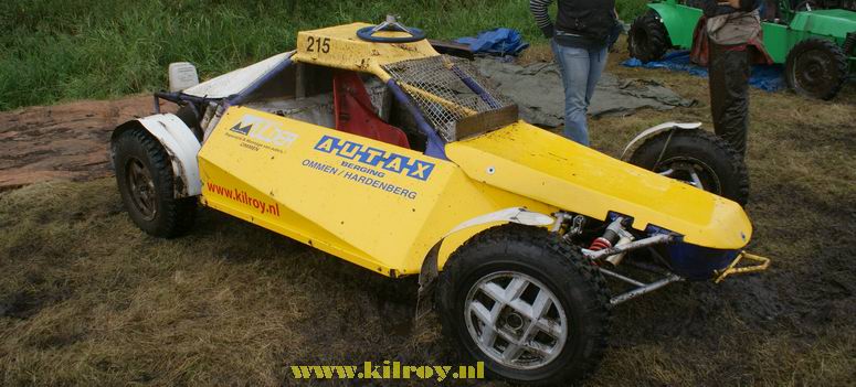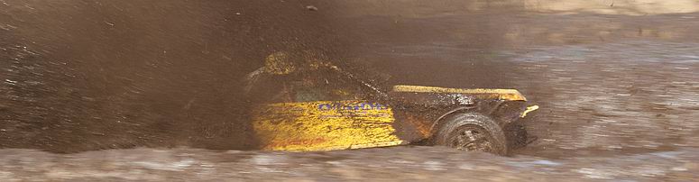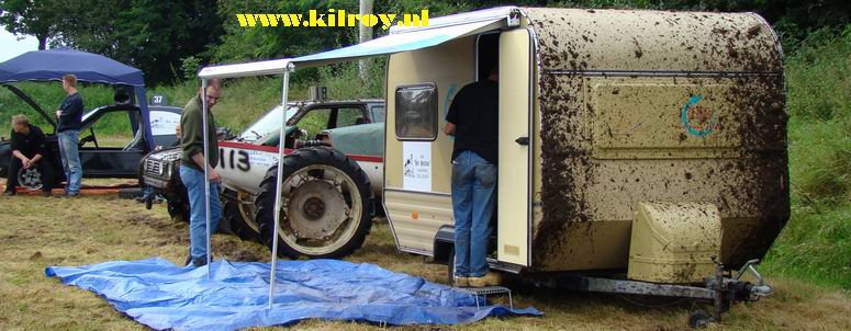 - Na enige tientallen auto's en wat buitjes zag het gras naast de baan er zó uit... Zoekplaatje: waar is de auto ? Van geel naar bruin in twee seconden ! . Jan heeft zojuist gehoord, dat hij tweede is geworden in de 4x4 klasse! -![]() ![]() Muziek tot besluit ! |