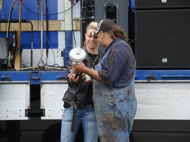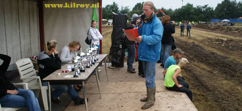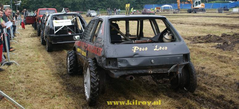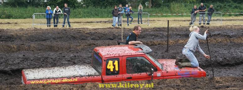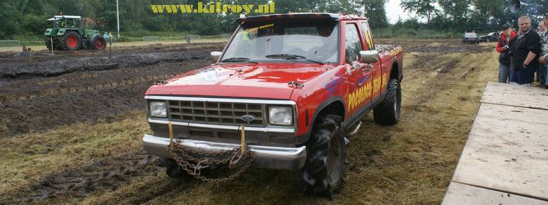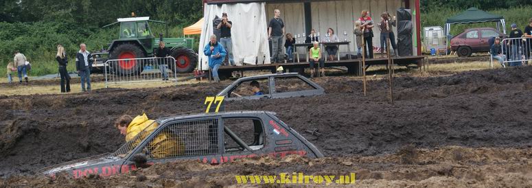 | Zaterdag 23 augustus 2008 Westerhaar ( IJsbaan aan de Zwembadlaan ) Eerste Westerhaarse Drekrace succes ondanks overdaad aan modder Boven: de baan - hier nog in min of meer "maagdelijke staat". Onder: de briefing. ![]() Full Pull voor Jan "Autax" Ardesch. En Jan is blij! (en vies) - De ploeg met de meeste aanhangers: het Poco Loco Team uit Hollandscheveld ![]() BOVEN: Klinkien: de uiteindelijke winnaar van de 4x4-klasse met vijf full pulls! Weinigen scoorden een full pull, behalve de 4x4's In Hollandscheveld hebben ze speciale dames voor allerhande huishoudelijke werkzaamheden ;-) Heeft iemand even een trekkertje voor me ? Boven: de dames van de jury. Onder: problemen met Jan's 4x4: aandrijfaslager kapot ! Geen nood: we hebben Bert, de wonderdokter ! -![]() Je hoeft plattelandskids meer één keer te zeggen, dat ze even mogen modderbaden in de "bak"en ....