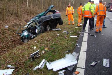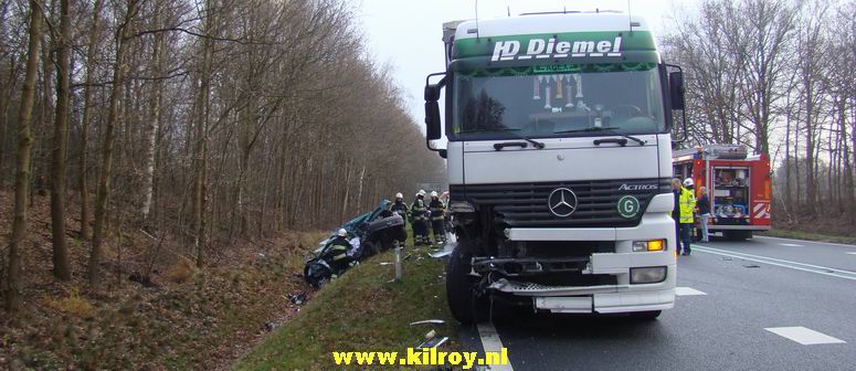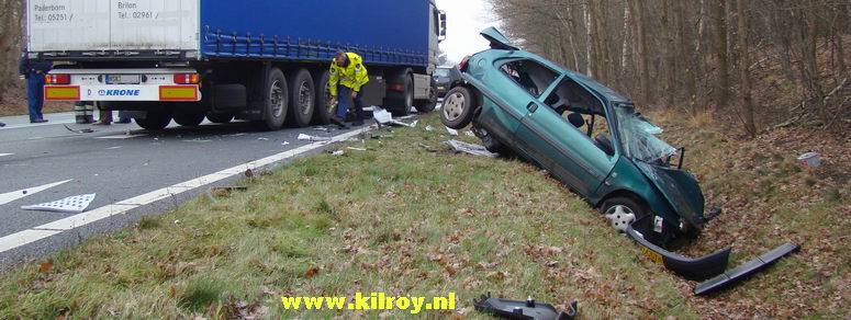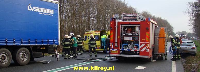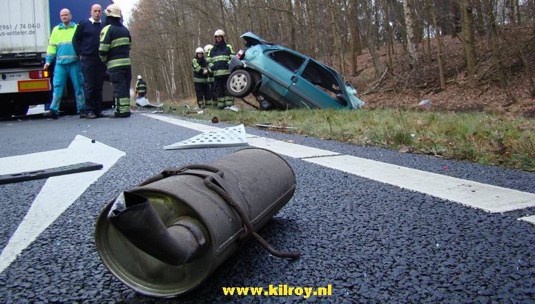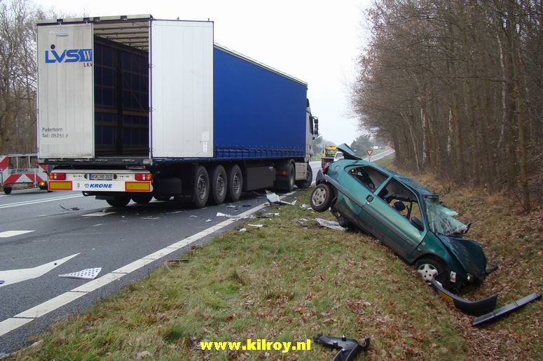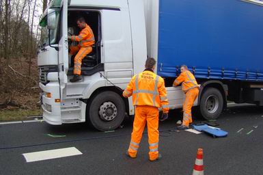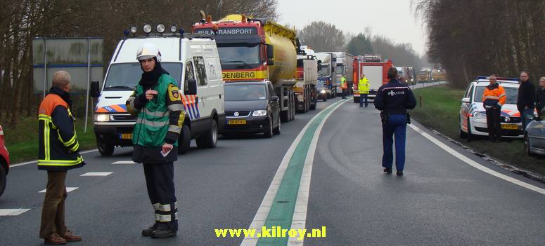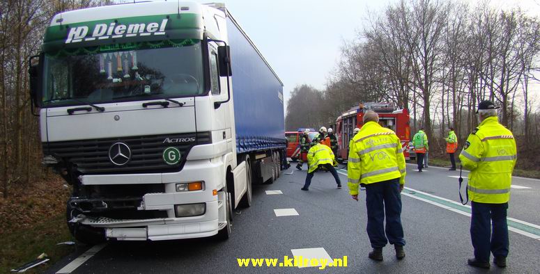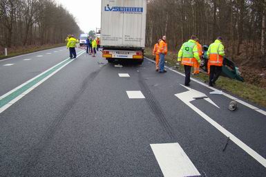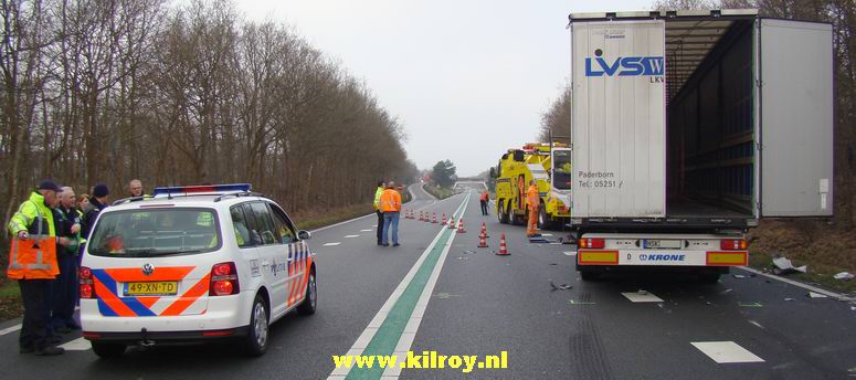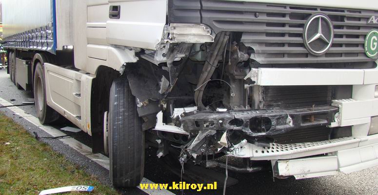 Automobiliste overlijdt na aanrijding met twee vrachtwagens