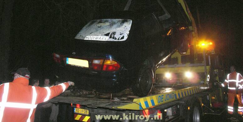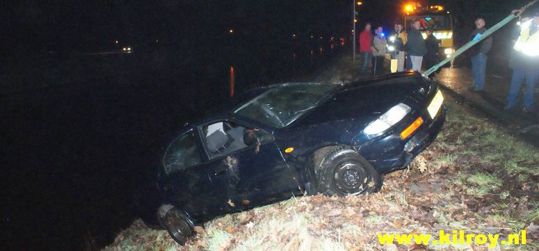 | Zaterdag 24 januari 2009 Stieltjeskanaal t.h.v. de Oldenhuis Gratamaweg Nachtelijk bad voor inzittenden Mazda 323 |
