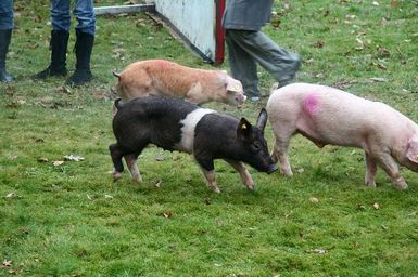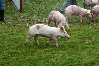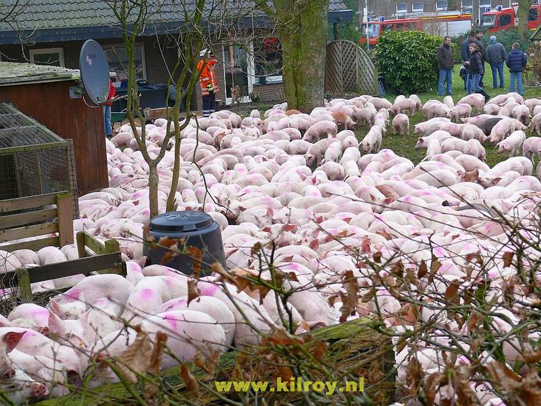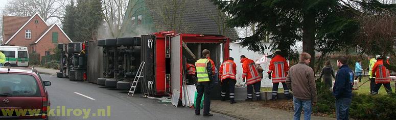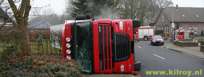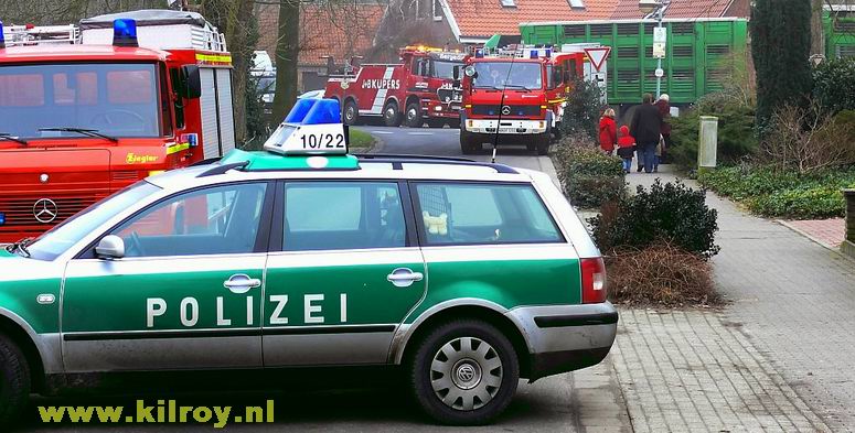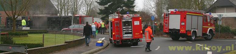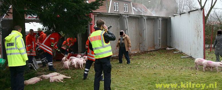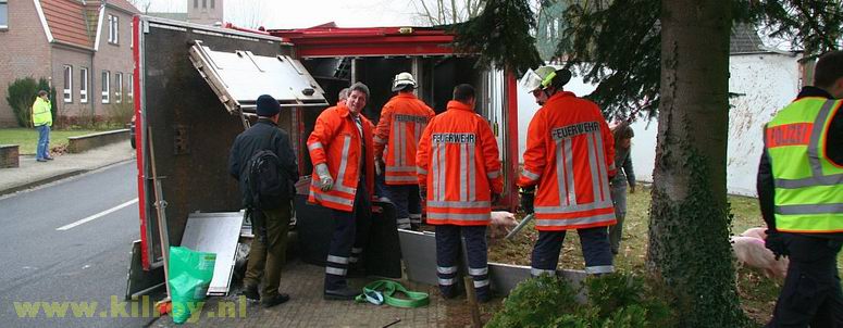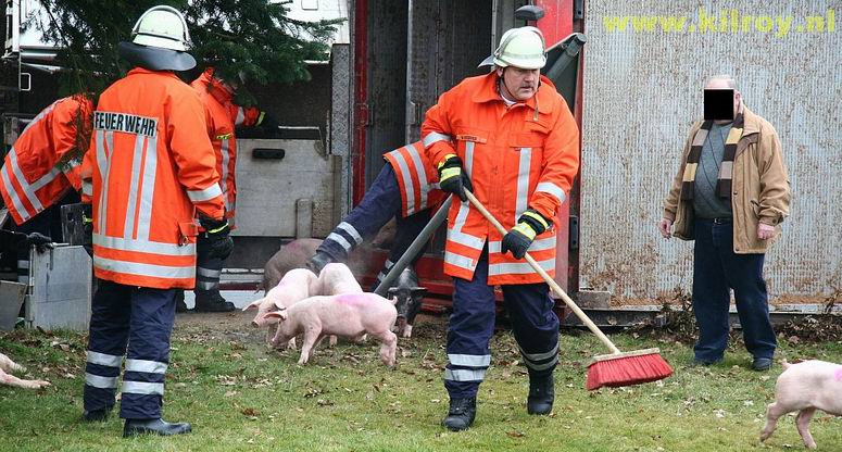 | Woensdag 29 januari 2009 Laar ( hoek Dorfstraße - Hauptstraße ) Brandweer redt meer dan 800 biggen uit gekantelde vrachtwagen - - - |