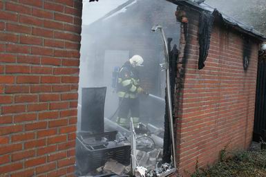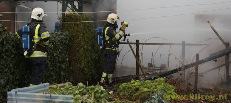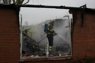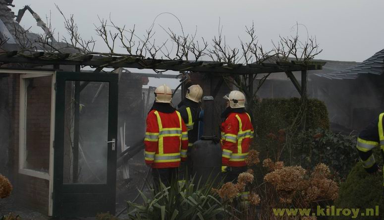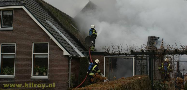 | Woensdag 29 januari 2009 Rouveen ( IJhorsterveldweg ) Aangebouwde schuur afgebrand; rietgedekte woning door brandweer gered - - |