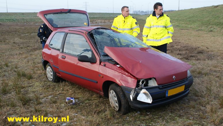 | Zaterdag 31 januari 2009 N34 ( Knooppunt Holsloot ) Renault Clio tuimelt van talud - bestuurder gewond |