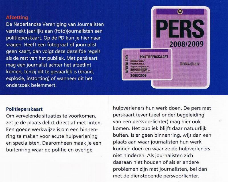| Maandag 20 april 2009 Emmen ( Weytackers ): Hoekwoning geheel uitgebrand; geen gewonden. ![]() -![]() Deze politiebrochure, bestemd voor alle politiepersoneel, is kennelijk na anderhalf jaar nog steeds niet overal bekend. . . . |