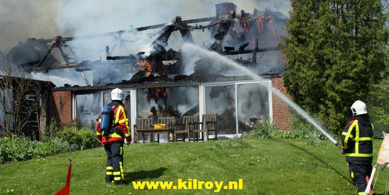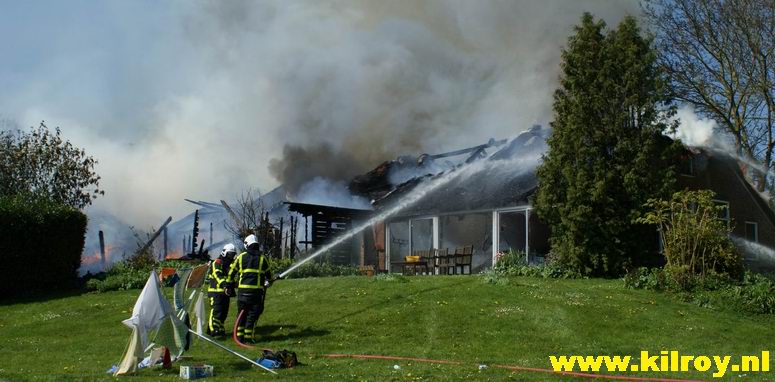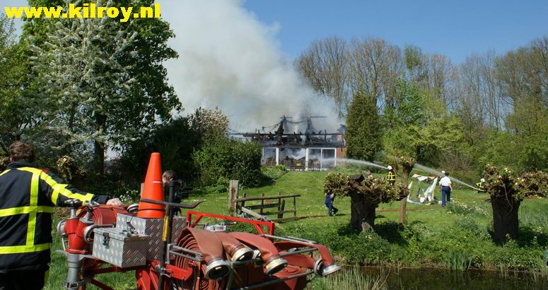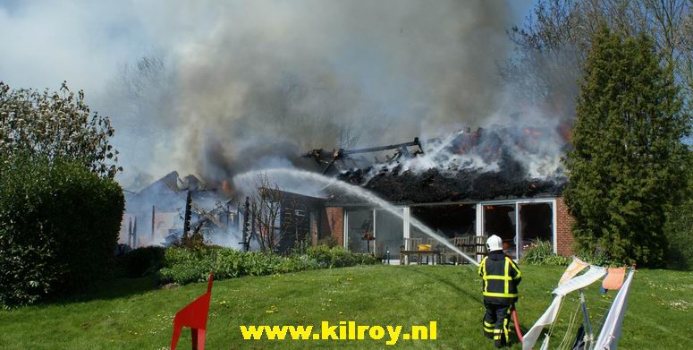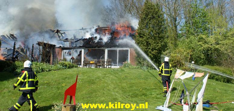 | Maandag 20 april 2009 Kampen ( Buitendijkseweg ) : Rietgedekte woonberderij brandt volledig af - |