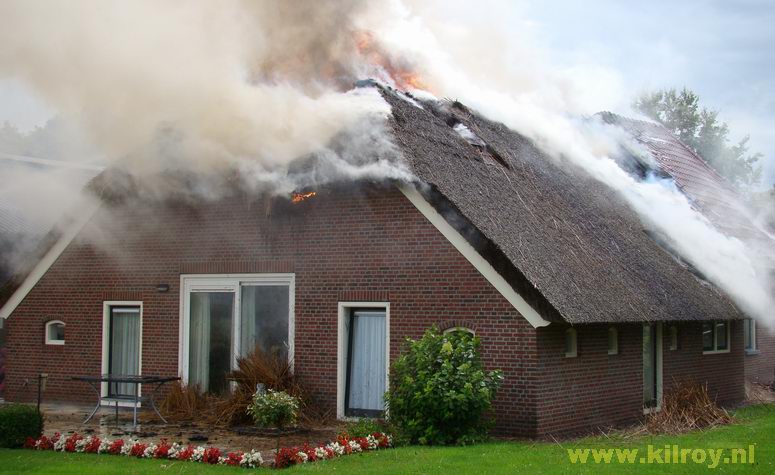 | Vrijdag 24 juli 2009 Nijeveen ( Gorthoek ): Woonboerderij brandt grotendeels af na blikseminslag - -