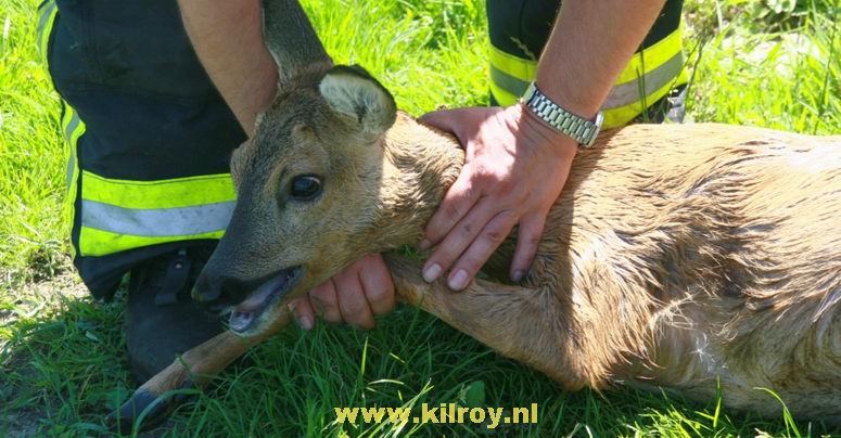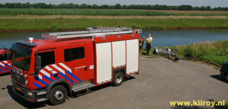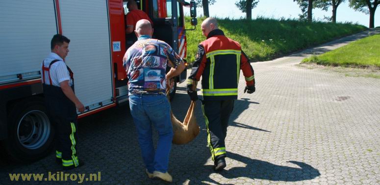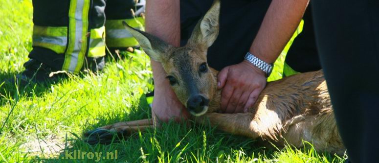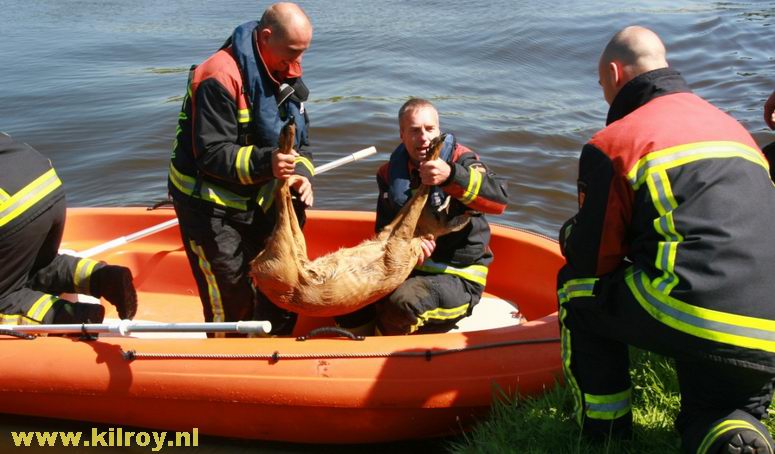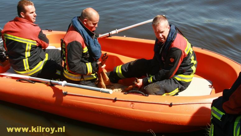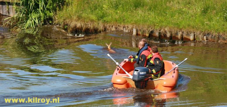 | Maandag 27 juli 2009 Stieltjeskanaal: Brandweer Coevorden redt opnieuw ree uit het water . |
