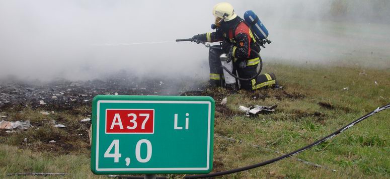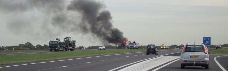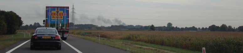 De rookwolken zijn hier al duidelijk te zien vanaf de oprit naar de N48 bij Balkbrug