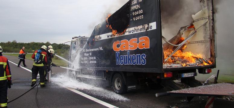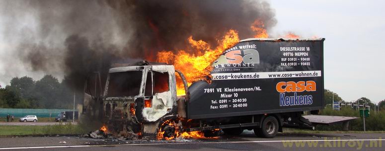 Brand verwoest vrachtwagen met keukenapparatuur en -meubilair
