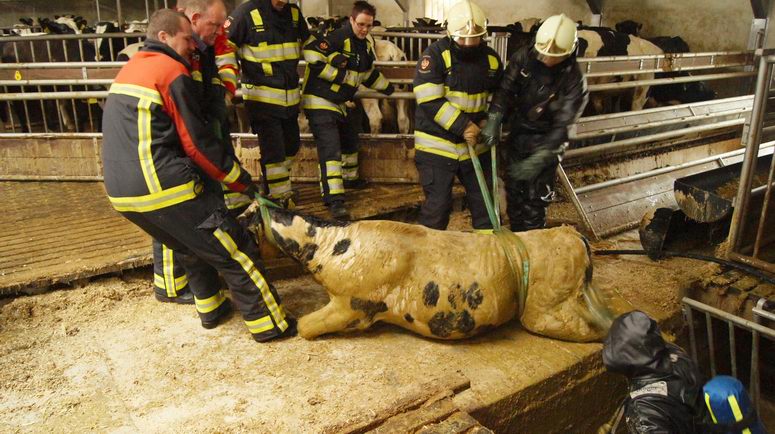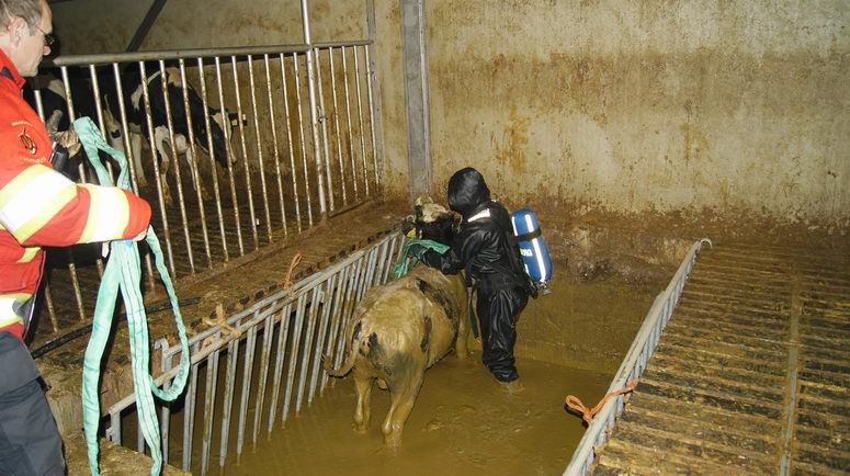 | Zaterdag 8 mei 2010 Elim: blusgroep de Krim redt zes stieren uit mestkelder in Elim |