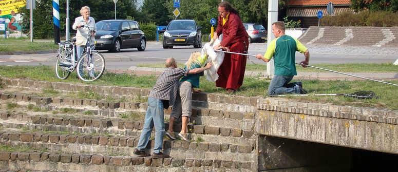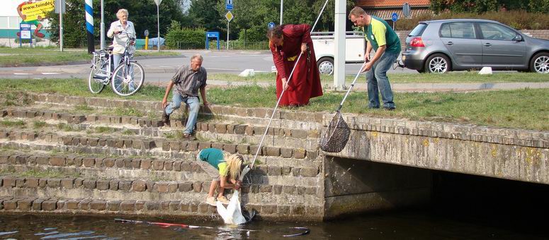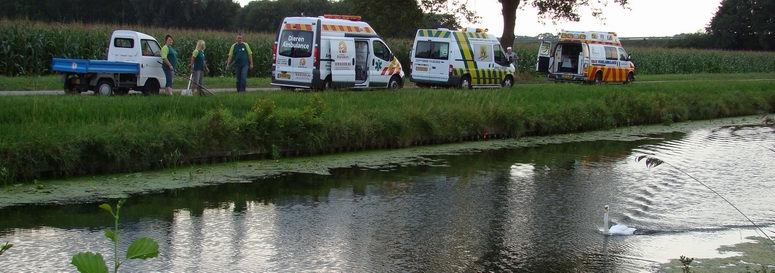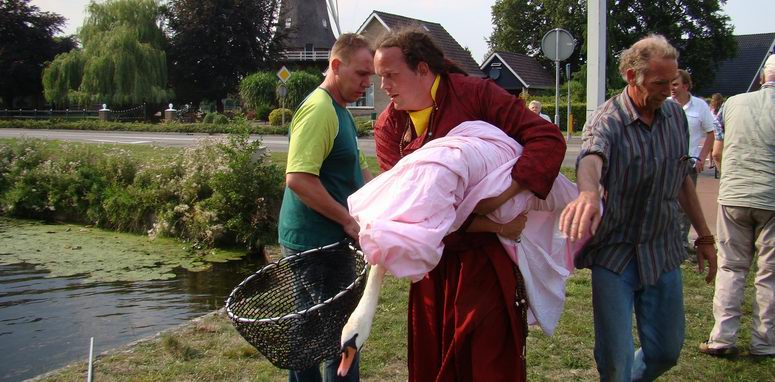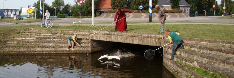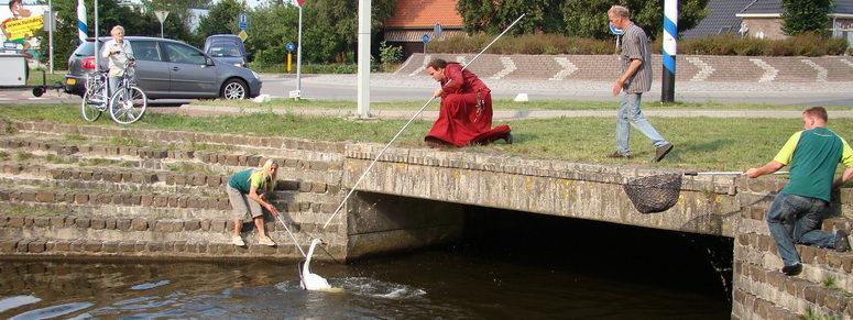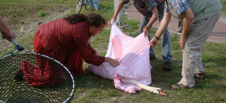 Zaterdag 14 augustus 2010 Coevorden (Lutter Hoofdwijk - Krimweg): Dierenbeschermers bregen zieke zwanen in veiligheid |