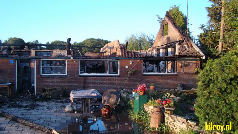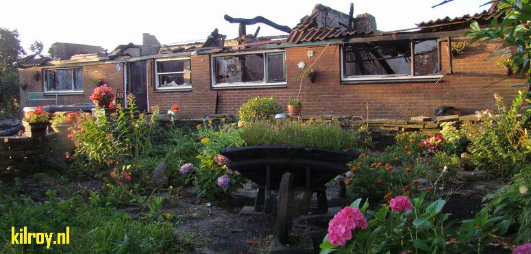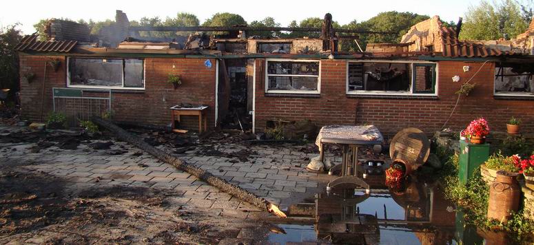 Maandag 23 augustus 2010 Elim (Van Echtenswijk): Afgelegen woning brandt volledig af |