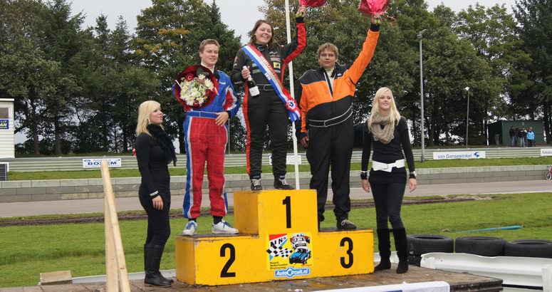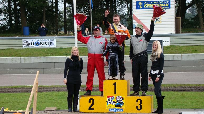 | Afgelopen zondag vonden de finale races plaats op het Polderputten Circuit in Ter Apel. Het beloofde een spannende dag te worden, aangezien René Hooijer in de 2000 8V-klasse slechts twee punten achter stond op zijn eeuwige rivaal Tale Ottens. Deze dag moest René dan ook elke manche voor Tale zien te eindigen om Nederlands kampioen te worden. Dit werd niet makkelijk: Tale verdedigde zijn titel van vorig jaar en de heren coureurs gaven elkaar ook geen meter ruimte op de baan. Er was die dag een speciale fan bij ons: Damian, een jongetje van vier jaar jong. Hij heeft een ernstige ziekte en wilde graag een keer met René over de baan. Zo gezegd, zo gedaan: een extra stoel in de auto gezet en gaan. Het kleine mannetje genoot zichtbaar en was de hele dag niet meer bij René weg te slaan. Leuk om zoiets te doen als extra verzetje en we hopen, dat Damian met heel veel plezier aan deze dag terug denkt ! (foto) |