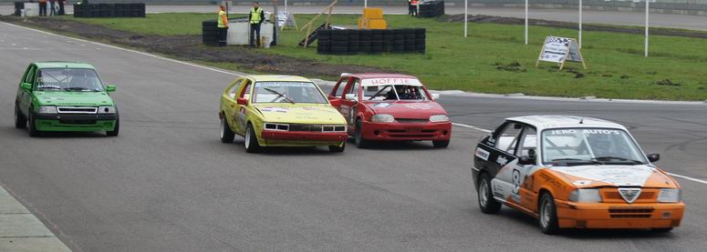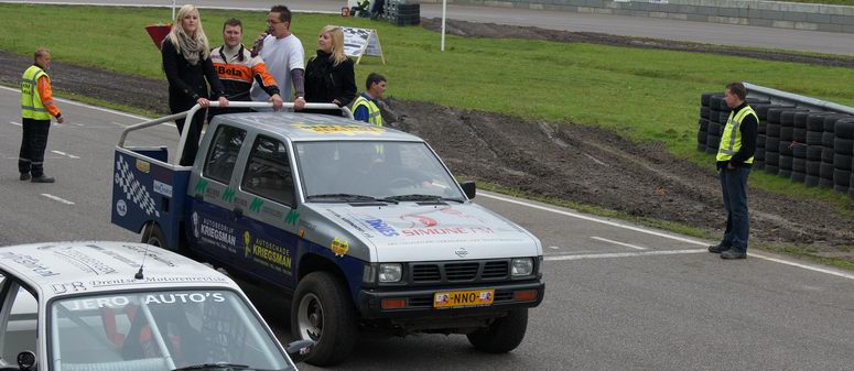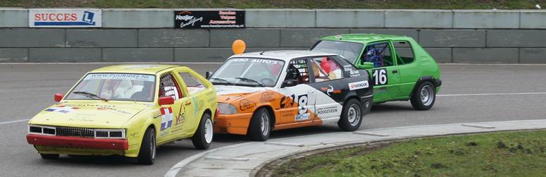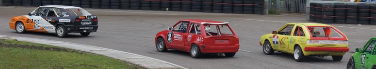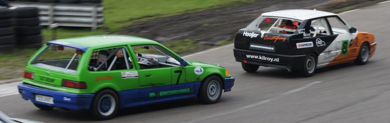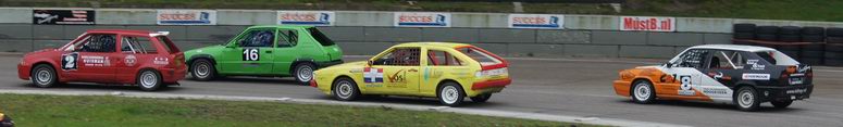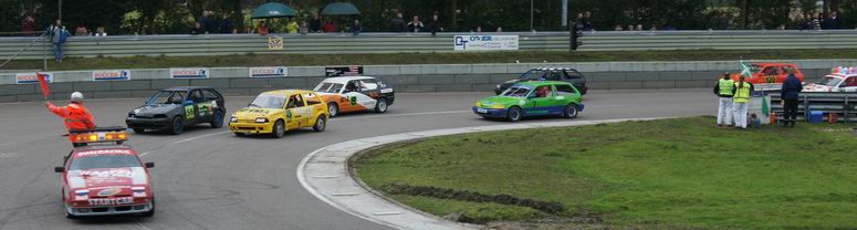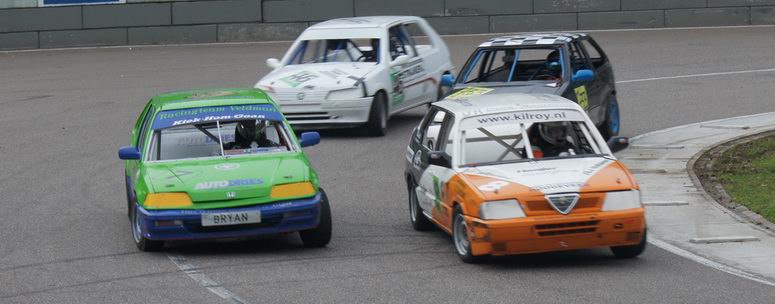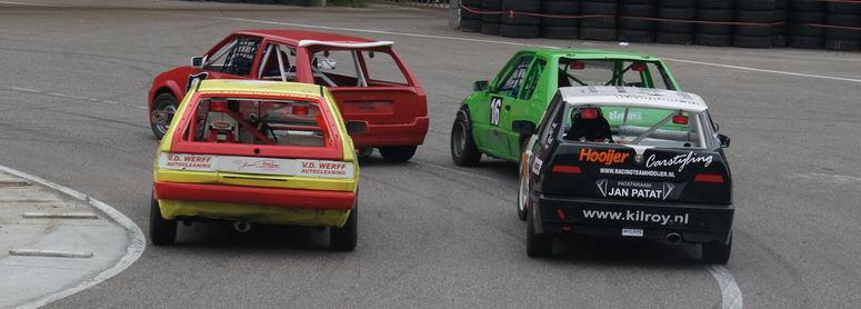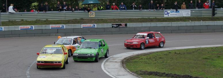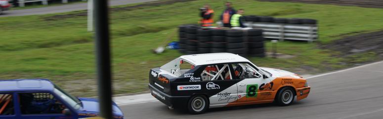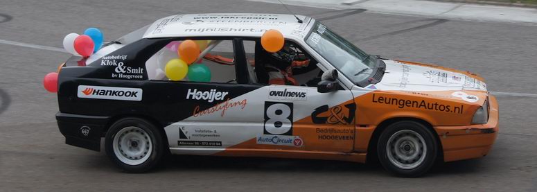 | Johan kon op de derde plaats eindigen in het kampioenschap, dus ook hij deed erg zijn best om dat vast te houden. Hij was een beetje zenuwachtig, aangezien hij wist, dat -als hij netjes zijn punten pakte- hij op de derde plaats in het eind-klassement van het kampioenschap kon eindigen. En voor zijn eerste racejaar is dat absoluut niet verkeerd! Kwestie van stabiel rijden en punten pakken. Helaas kwamen er zondag twee autos bij, die ook meestreden voor de punten van het kampioenschap... wat wij dus totaal NIET vinden kloppen! Die jongens rijden mischien één of twee in het seizoen, maar kaapten wel de punten voor Johan's neus weg waardoor hij niet op plaats drie kon eindigen, omdat er niet zoveel verschil in punten zaten. Maar ondanks dat was het een geslaagde dag voor Johan en reed hij lekker zijn rondjes. De eerste manche eindigde hij op de zevende plaats. De tweede manche startte Johan vanaf de tweede startrij. Het ging erg lekker en Johan had het gevoel met de auto en de baan nu helemaal door. Het resultaat: een mooie verdiende derde plaats. Complimenten! De derde manche begon Johan op de één na laatste startrij. Een redelijk slechte plek aan de buitenkant van het startveld. Het werd een mooi gevecht: ondanks remdrukproblemen wist Johan zich al snel weer naar voren te boksen en eindigde hij op de vijfde plaats. De finalemanche begon goed: Johan wist ronde na ronde de eerste plaats vast te houden, maar kon uiteindelijk de Swiftjes GTI toch niet meer weerstand te bieden en de problemen met de remdruk achter hielpen ook niet echt mee. Het eindresultaat was dan ook een vierde plaats. Johan heeft het in zijn eerste racejaar absoluut niet verkeerd gedaan. Hij kan terugkijken op een mooi beginnerseizoen, waar het toch altijd een beetje leren en kijken is. Complimenten voor Johan ! Volgend jaar gaan we voor een plaats bij de beste drie! |