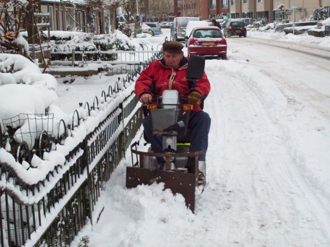 ![]() Sneeuwschuiven met de scootmobiel in Twello ( G. Diks ) |