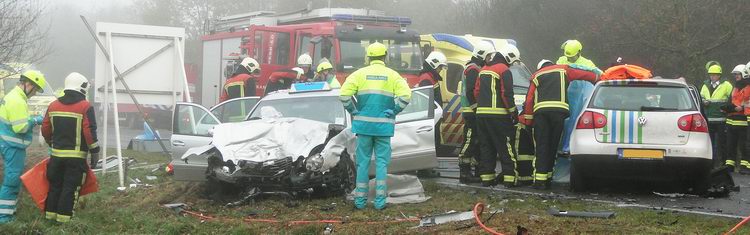 Dinsdag 22 november 2011 Klijndijk (Odoornerweg): Drie gewonden door aanrijding tussen personenauto en taxi |