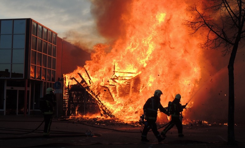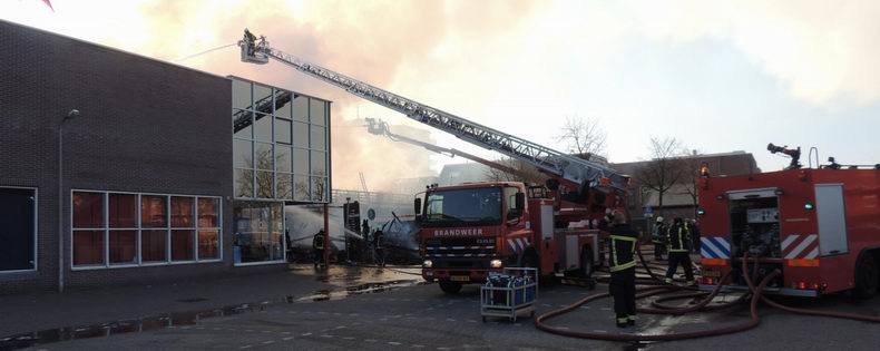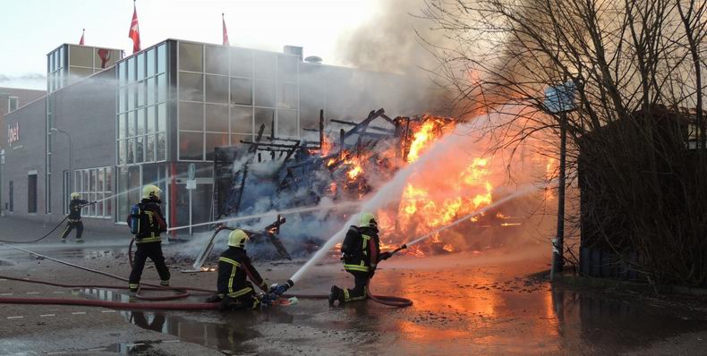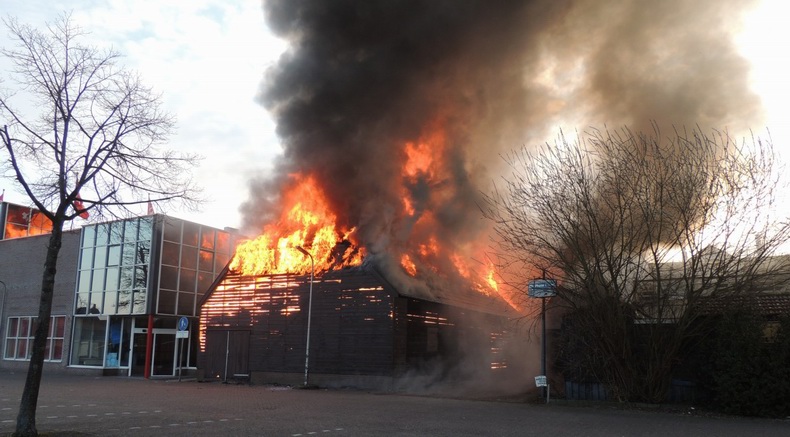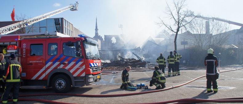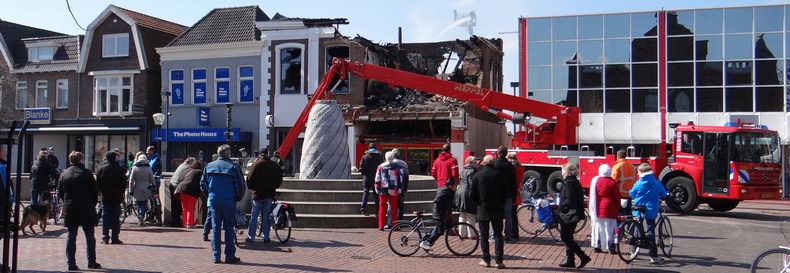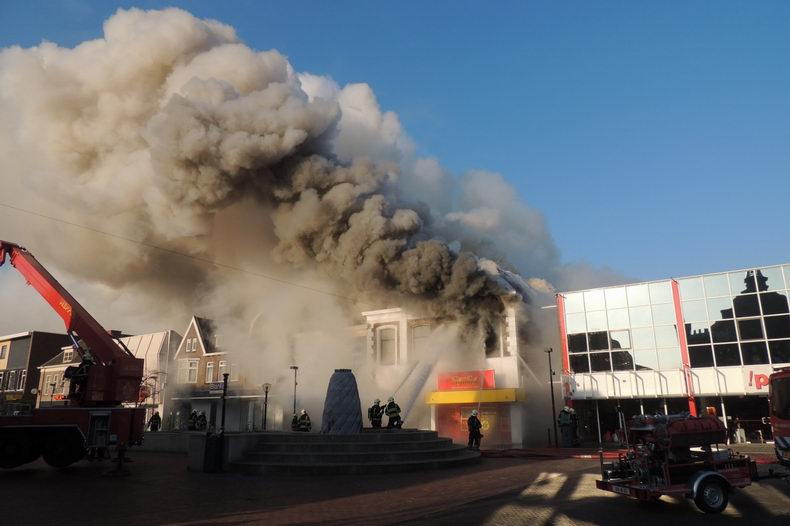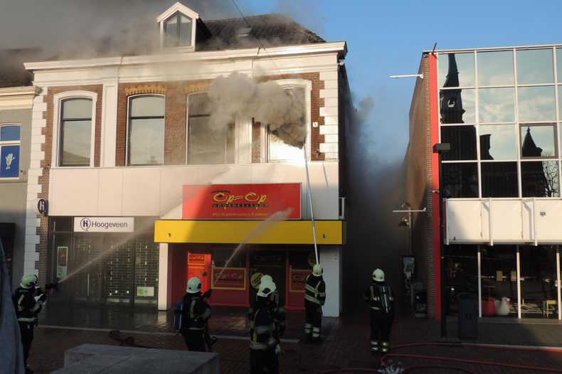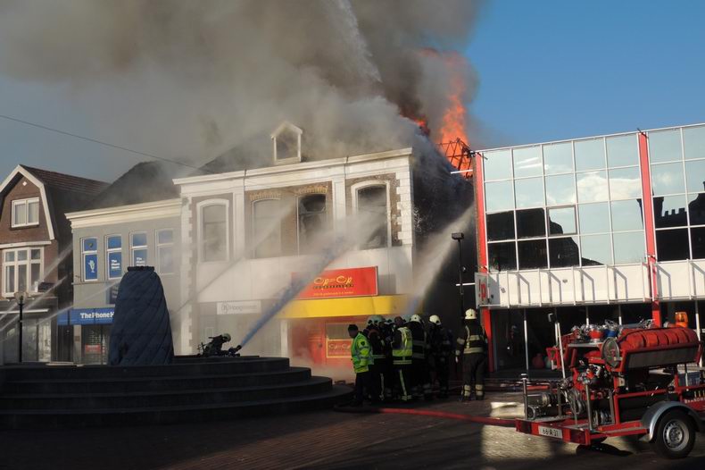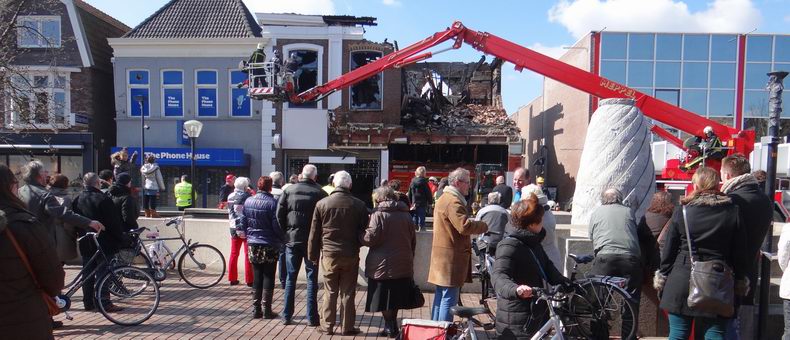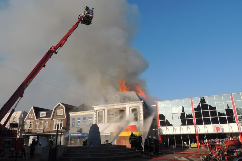 Maandag (Tweede Paasdag) 1 april 2013 Hoogeveen (Bilderdijkplein / Hoofdstraat): Zeer grote brand verwoest grote houten schuur en woon / winkelpand |