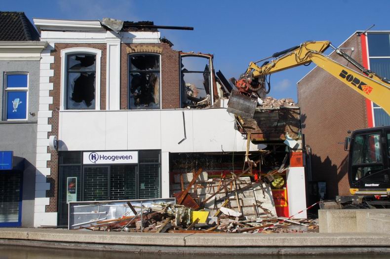 De sloop van de afgebrande panden: |
