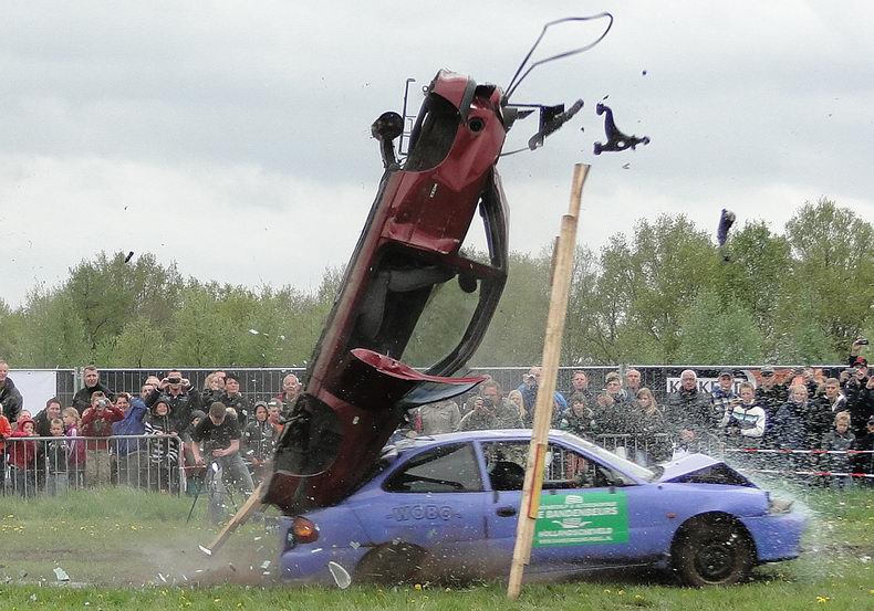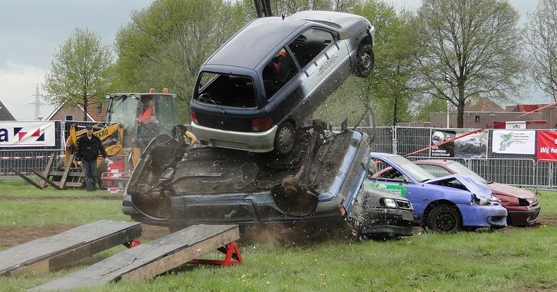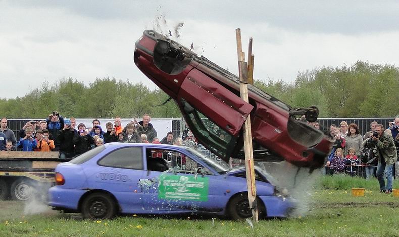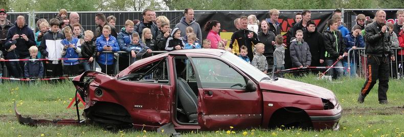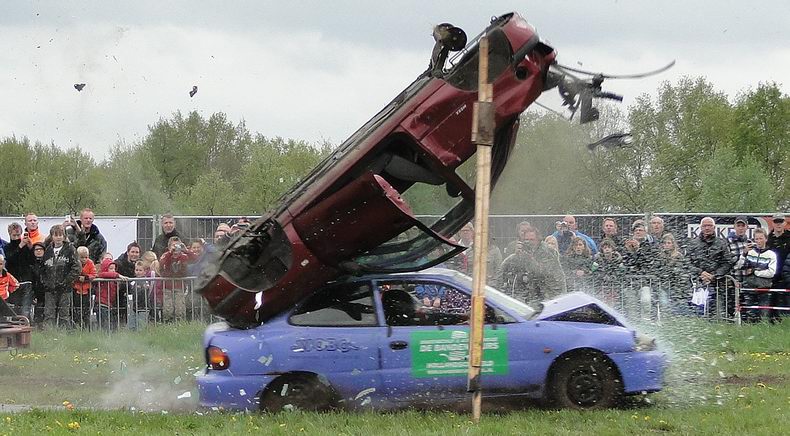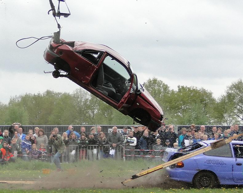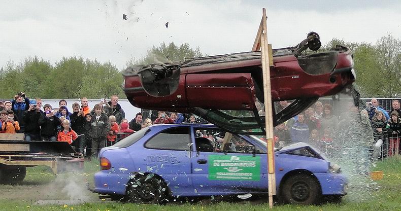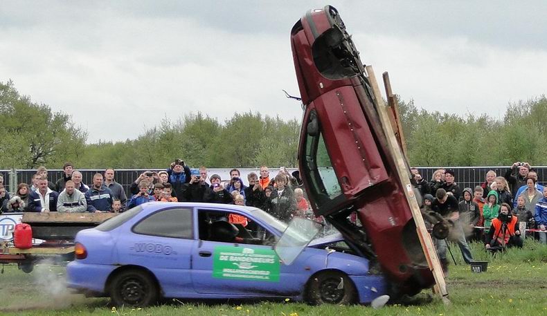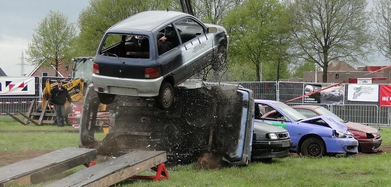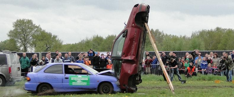 Vrijdag 10 mei 2013 Alteveer (Drenthe): Bloedstollende stunts van Daring Dantes tijdens PocoLoco-team Autoblubbering |