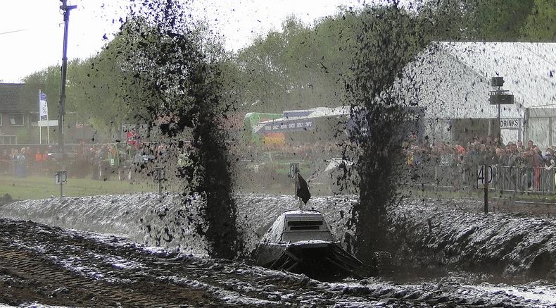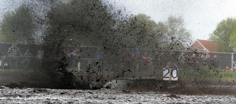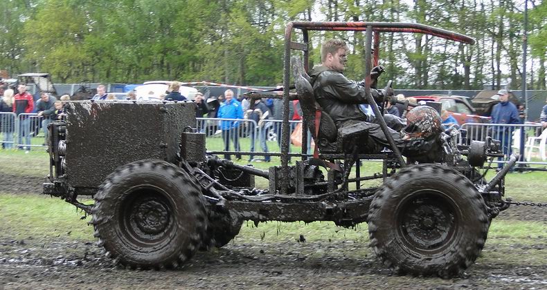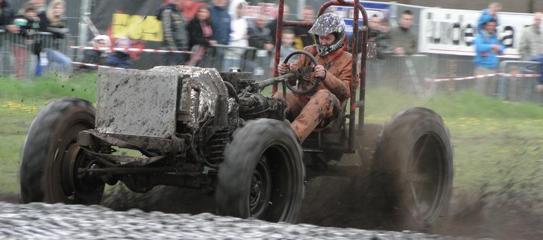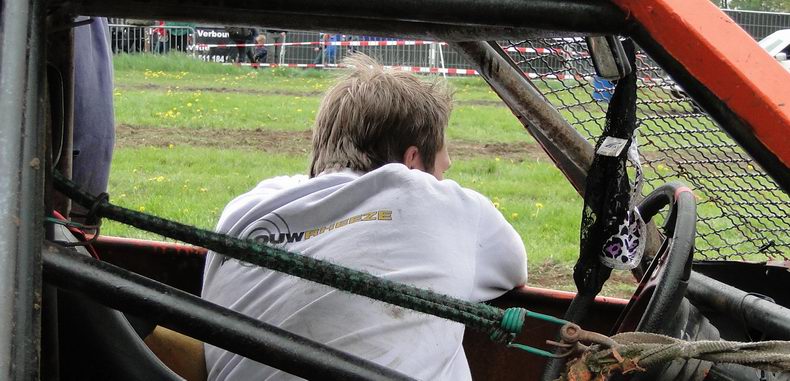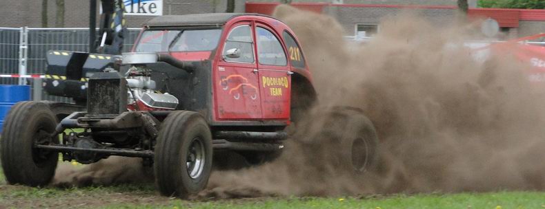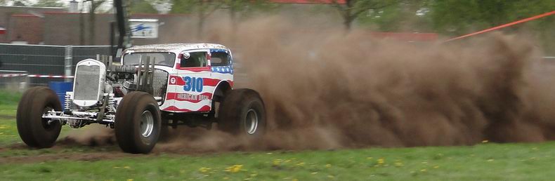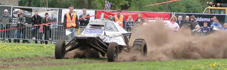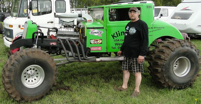 | Wolter's Klinkien-toy deed voor de verandering -bij gebrek aan een aandrijfas- mee in de twee-wiel-aangedreven Specials-klasse. Binnenkort komen de Westerhaarder en John Kloppenberg uit in een nieuwe klasse, waarin de auto's pal voor de modderbak starten, dus zonder aanloop! |