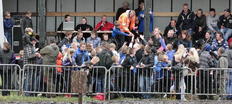 ![]() Wim "de Stem Zonder Rem" Bremmer raakte maar niet uitgepraat over "Gerda Grandioos"; hieronder in aktie, maar nu nog redelijk schoon. |