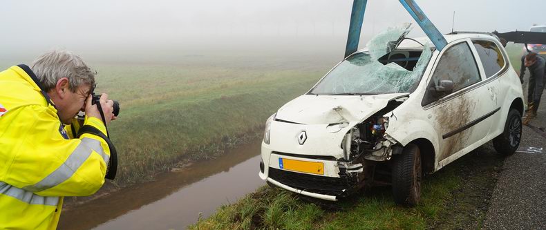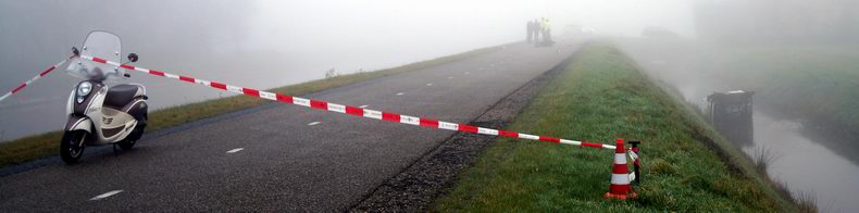 Snorscooterbestuurster zwaar gewond door frontale botsing in mist en duisternis