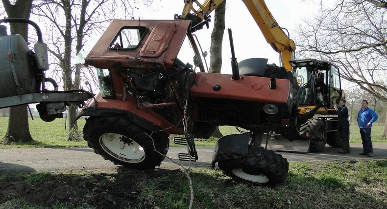 Zaterdag 29 maart 2014 Drogteropslagen (Drogteropslagen, nabij de Luttergreppel) Tractor met mestinjector gekanteld; bestuurder gewond